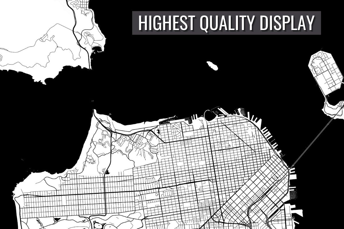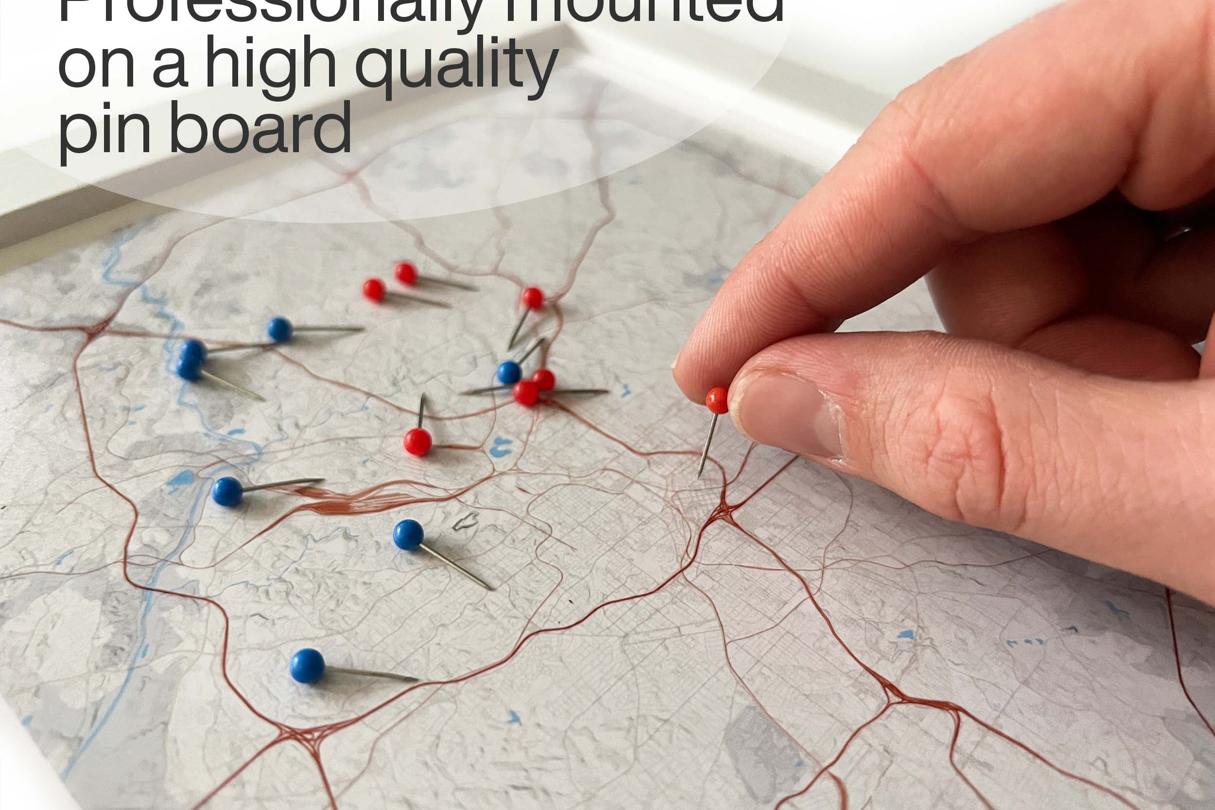 Use as a push pin map or wall art, makes for a great wall display for Air BnB's or vacation rentals. Delight your guests and customers with a beautiful map of your city! We can add special icons for your location. We can also add points of interest. Contact us if you would like to add POI and icons to the map for a custom quote.