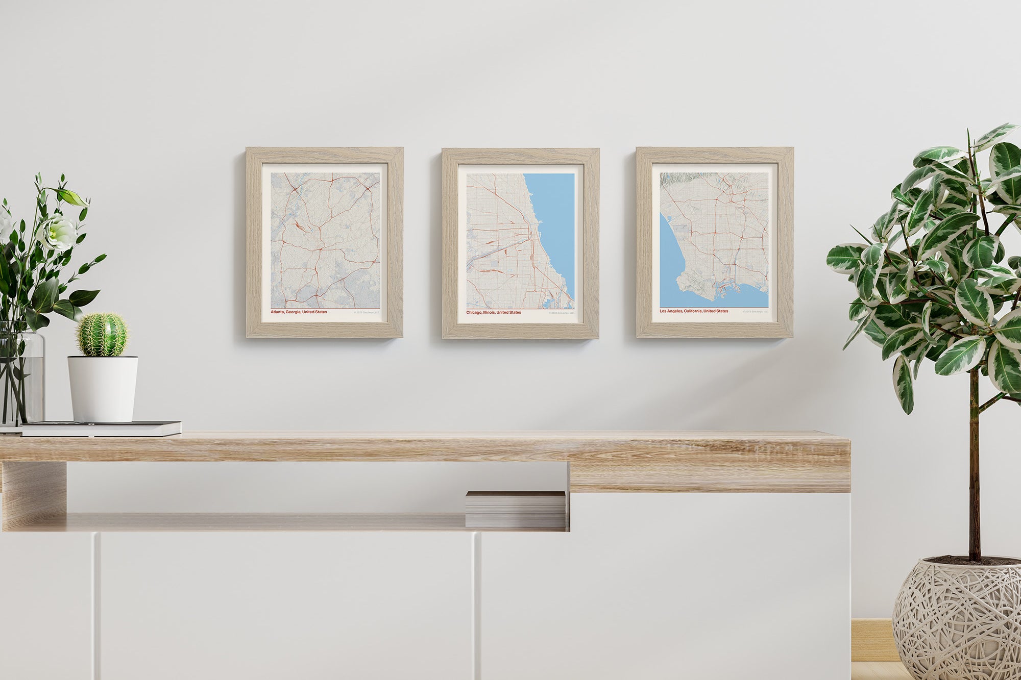 Celebrate a special location and display your favorite memories with a Framed City Map. Whether it's the place you call home or the city where you fell in love, our Framed City Map Wall Art will help you relive these precious moments.
