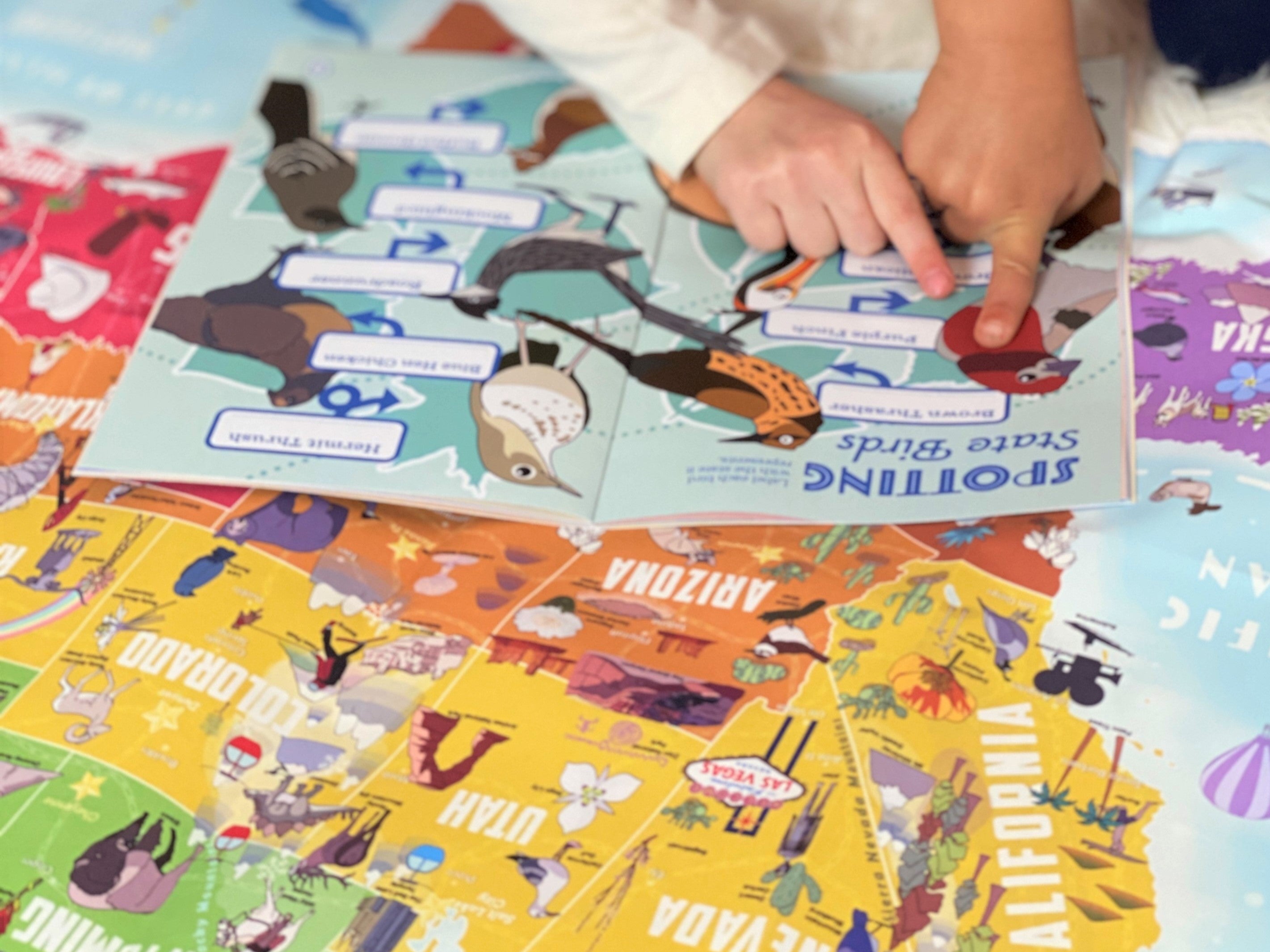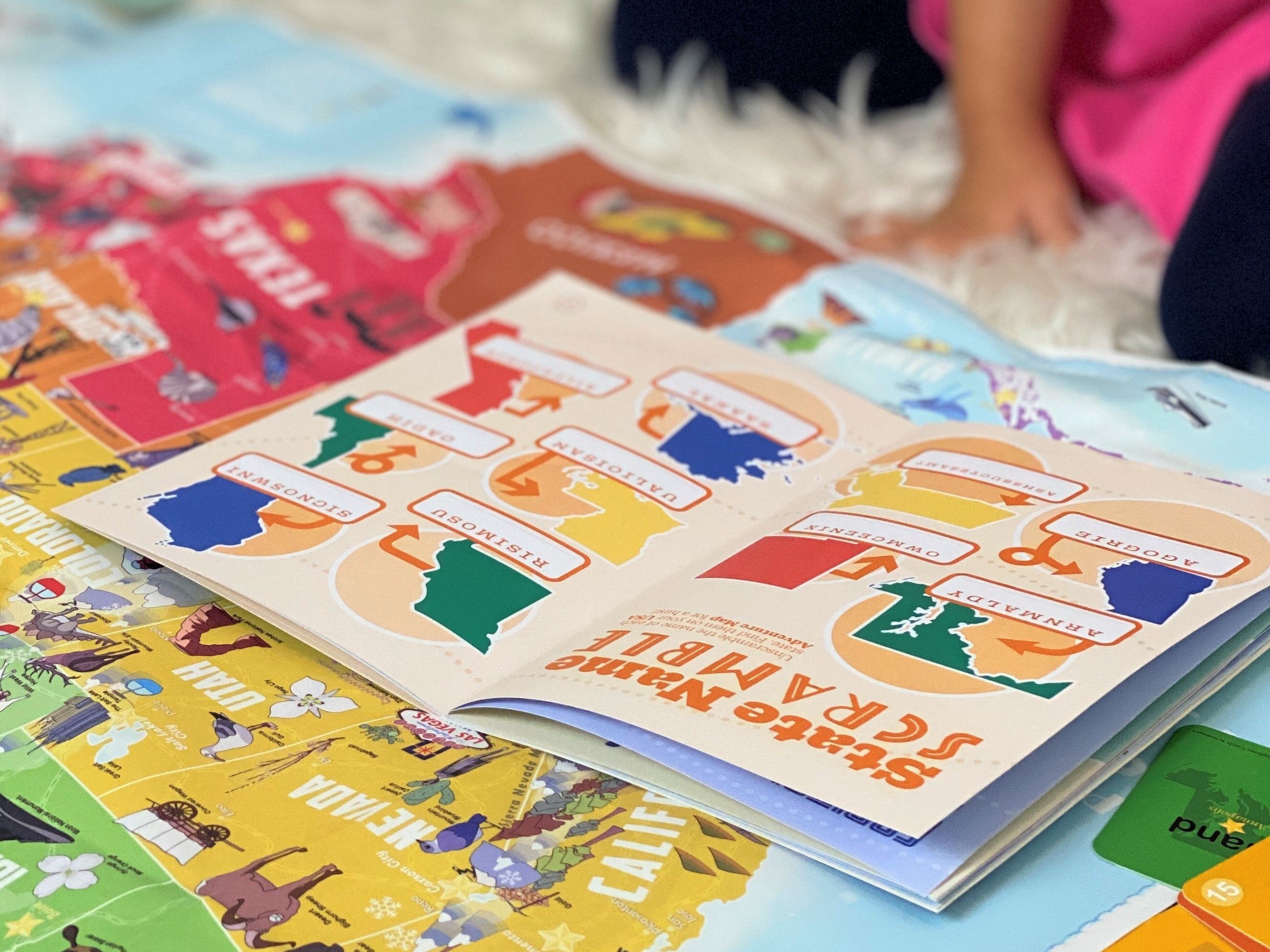 The impressive 25-page Activity Book is beautifully illustrated. It includes fun activities to keep the whole family challenged. You’ll discover more details about your specific home State, practice your seeking skills by finding details on the map, match States to their capitals, untangle word scrambles and much more! You’ll be a true geography expert!