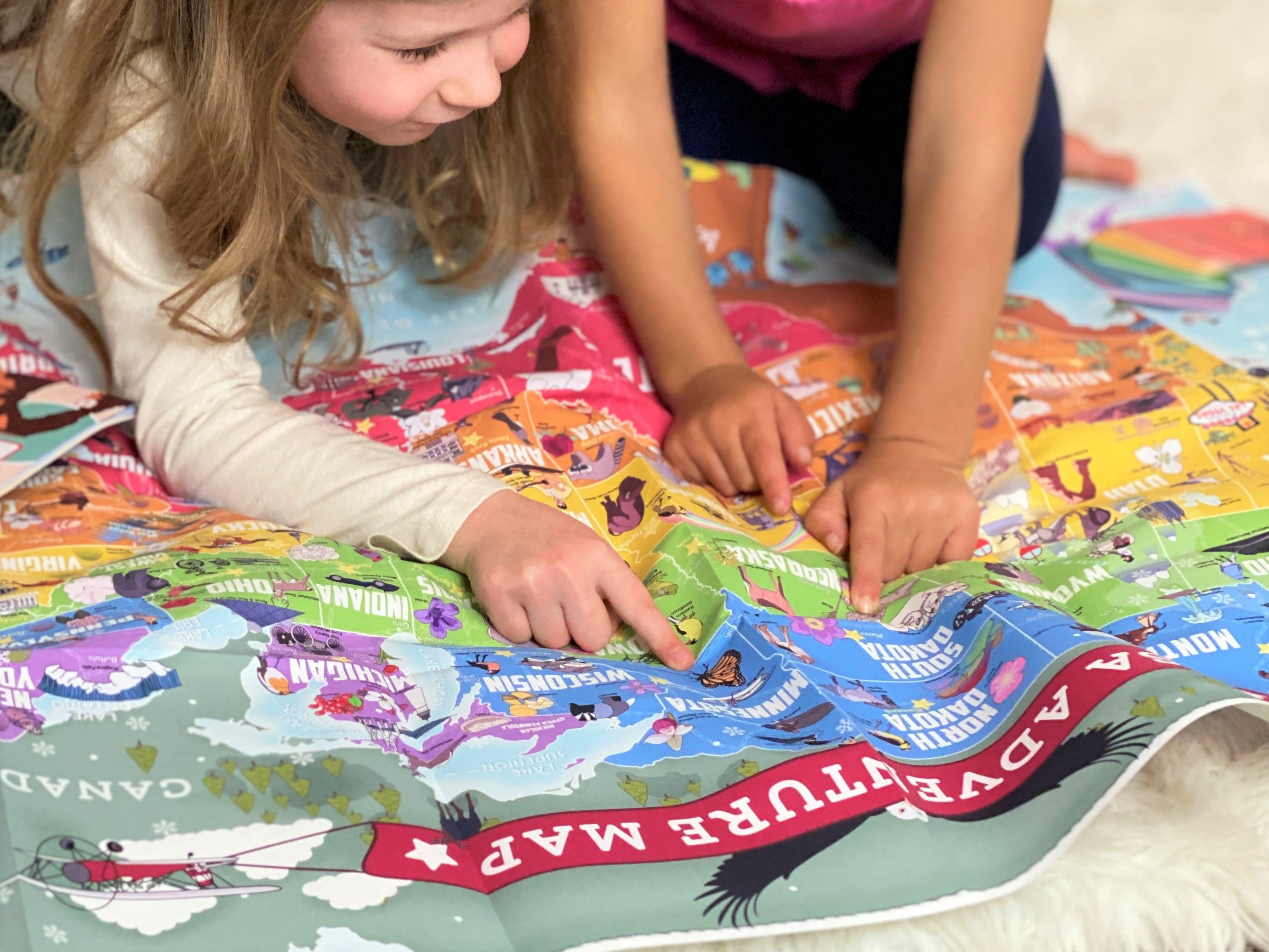 Order additional Fabric Maps to accompany our Kids USA Adventure Game Bundle. Multiples are available for siblings and classmates.