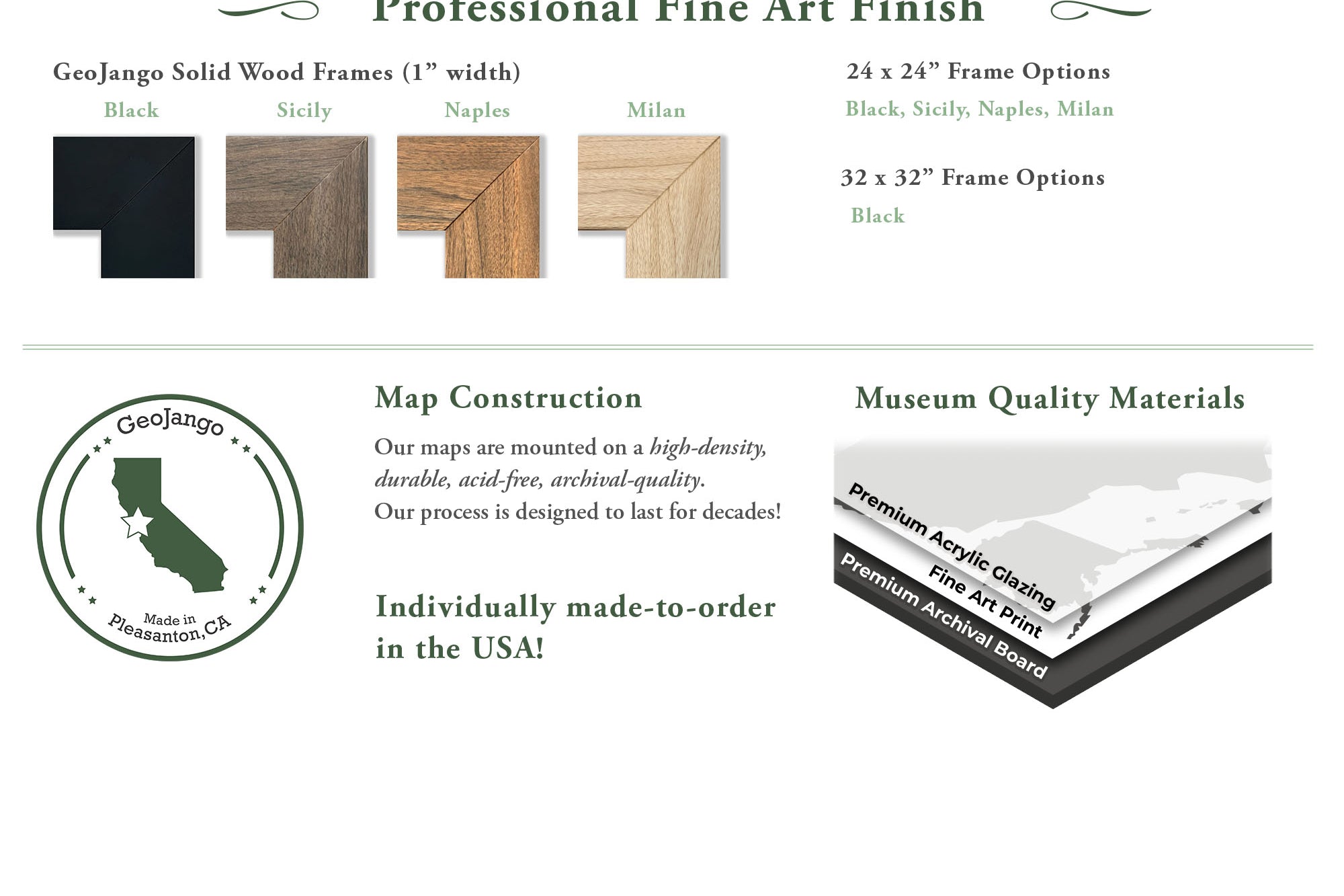 Framed maps and canvas world map wall art for travelers. Professional cartography and archival printing, each map made to order, personalized just for you, and hand crafted with stretched canvas or fine art paper.