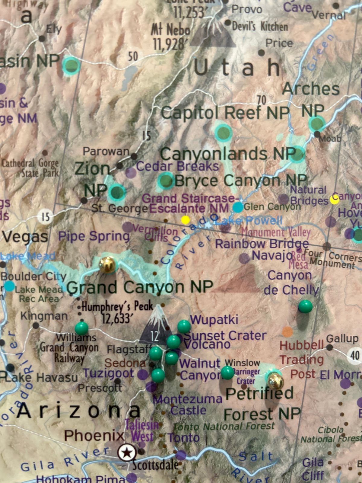 The map is nicely done and very detailed with all the national parks, landmarks, points of interest, and more shown for each state.