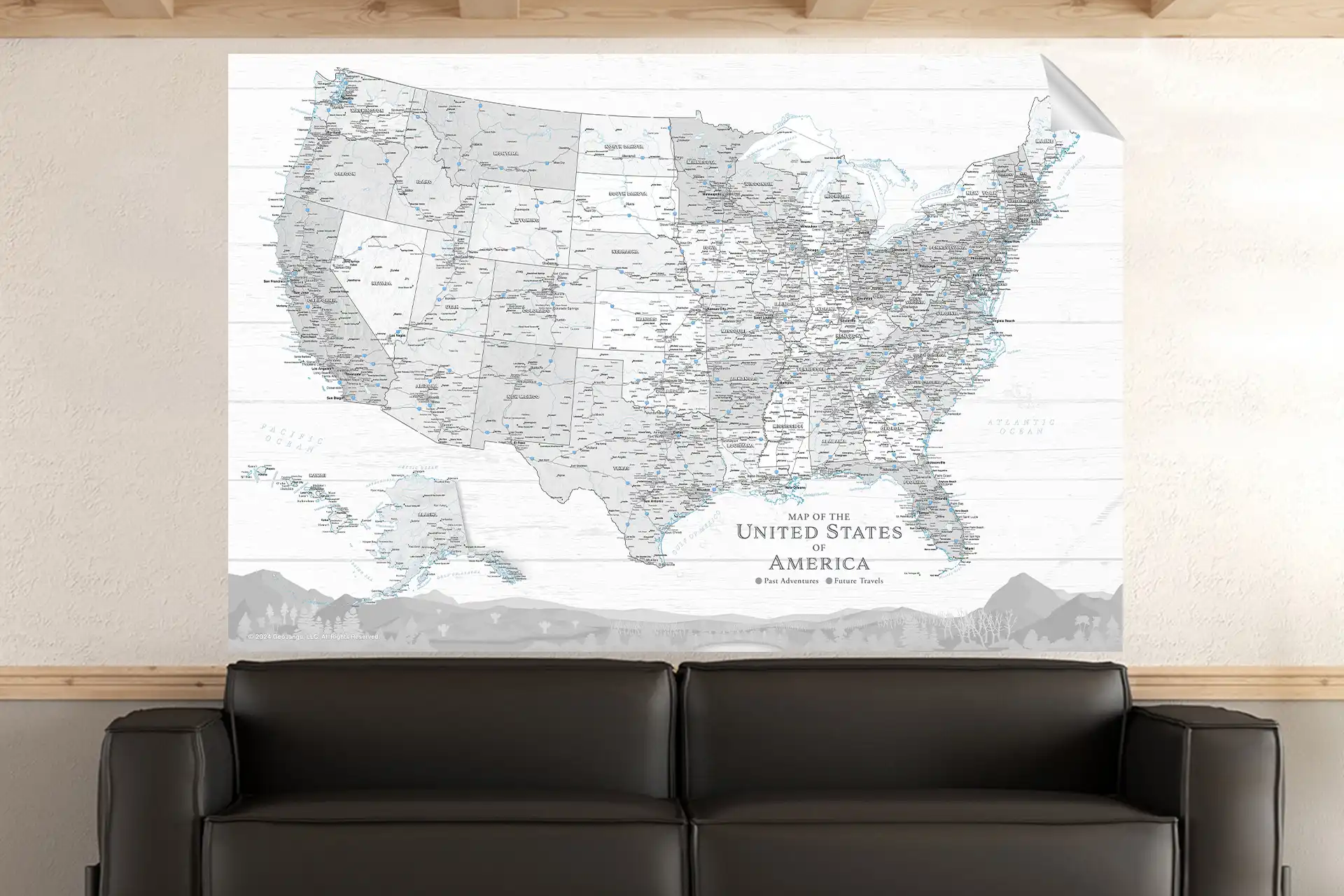 If you are looking for a custom decal graphic for your place of business or one that is larger than the sizes offered below, see our page about Custom Map Wallpaper