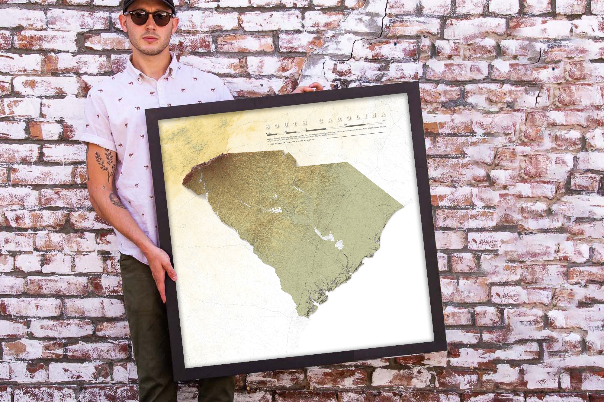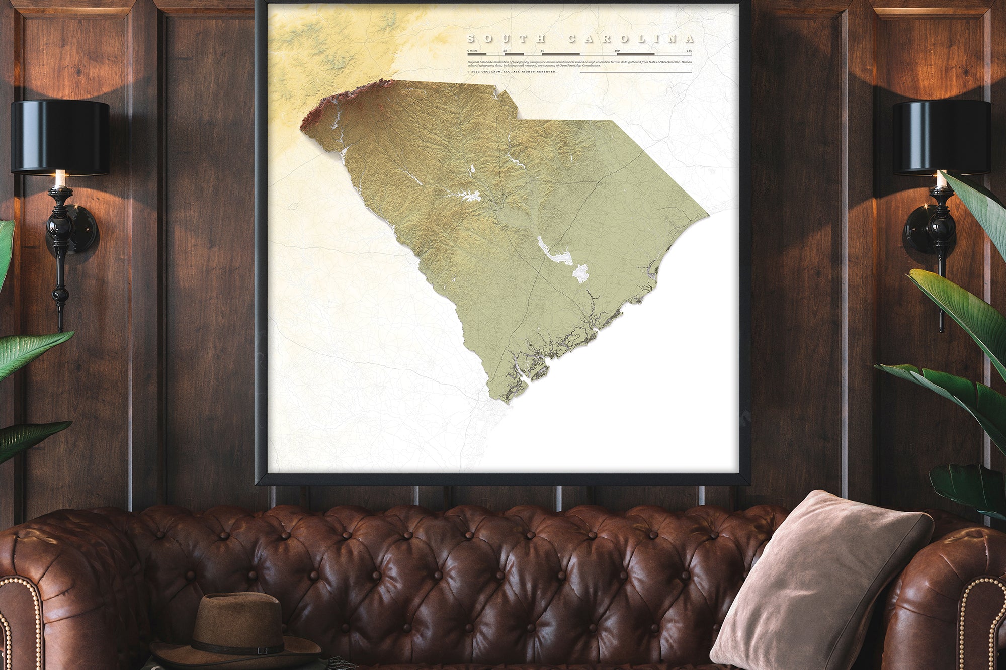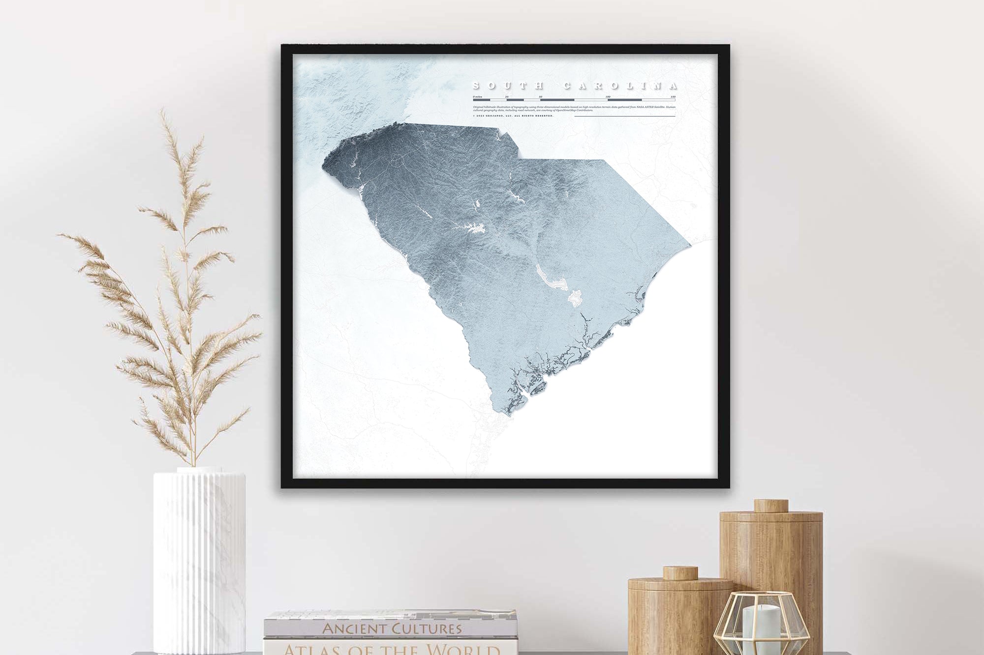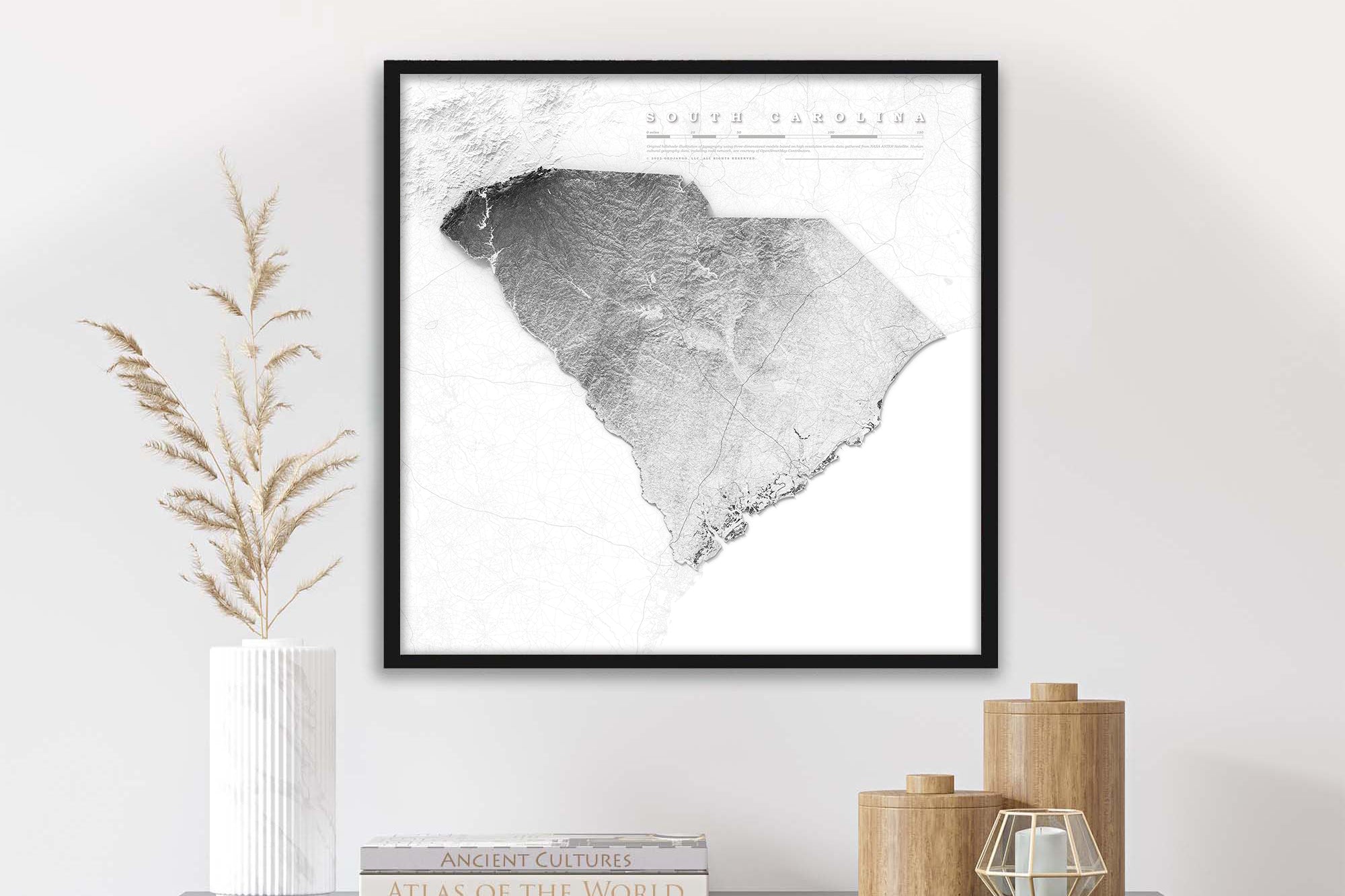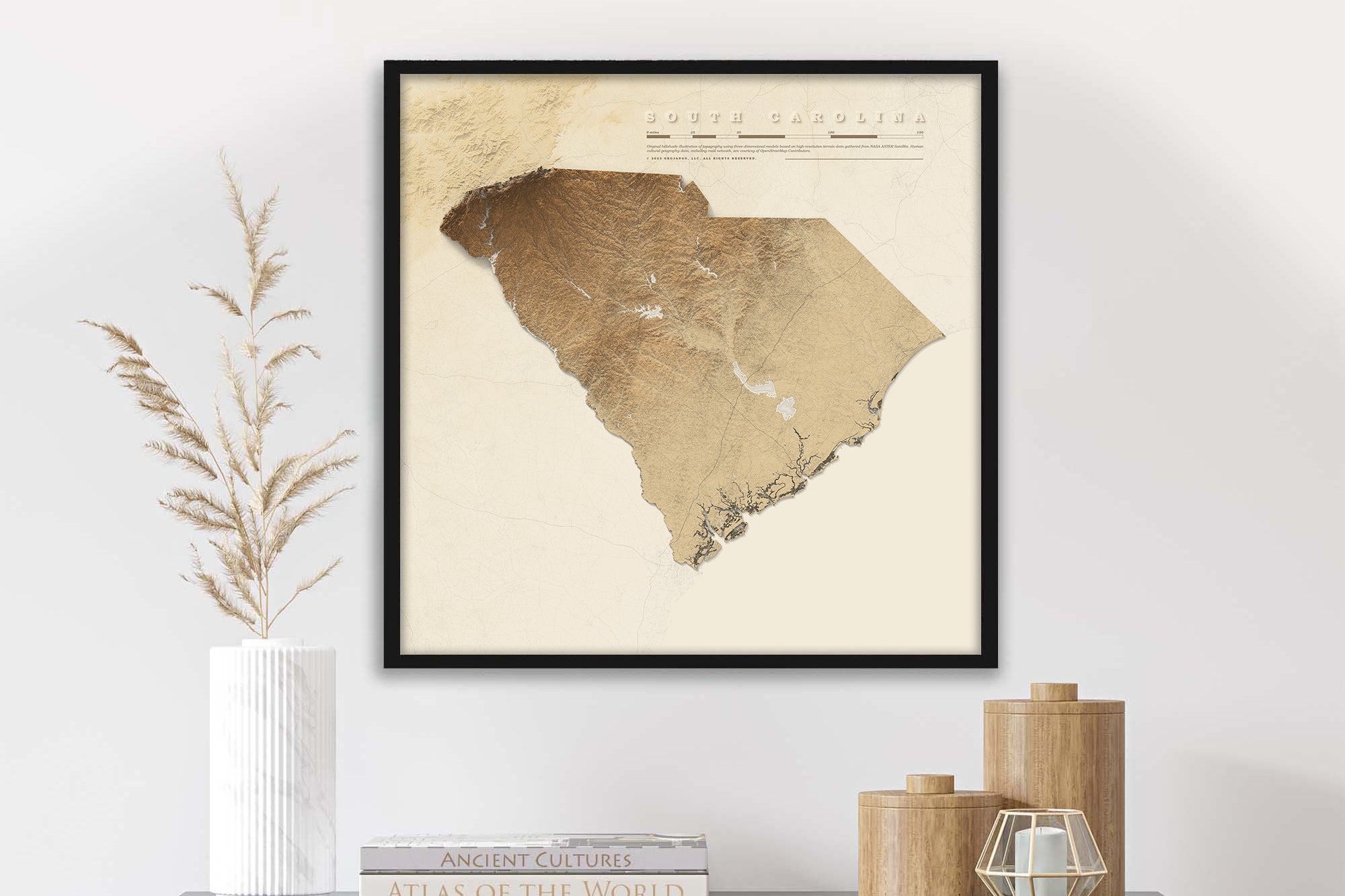 Map art featuring shaded relief and elevation, detailing the intricate features of the land as only a local could enjoy them. Every peak, valley, and hill casting beautiful shadows, with roads seen winding through mountain ranges.