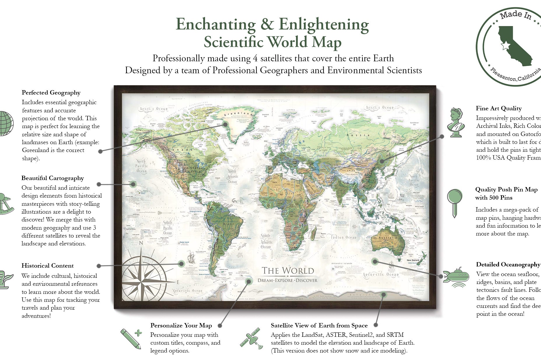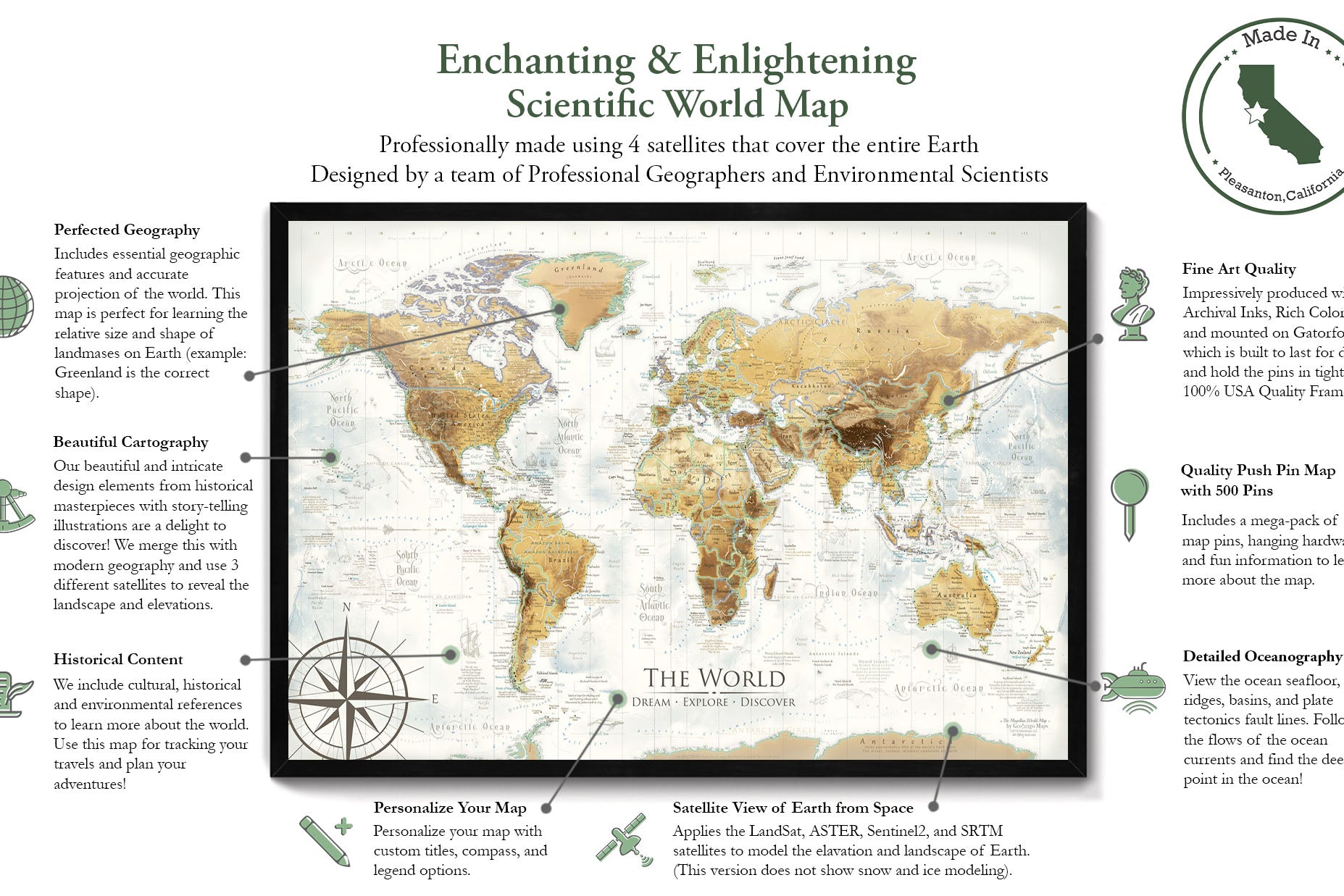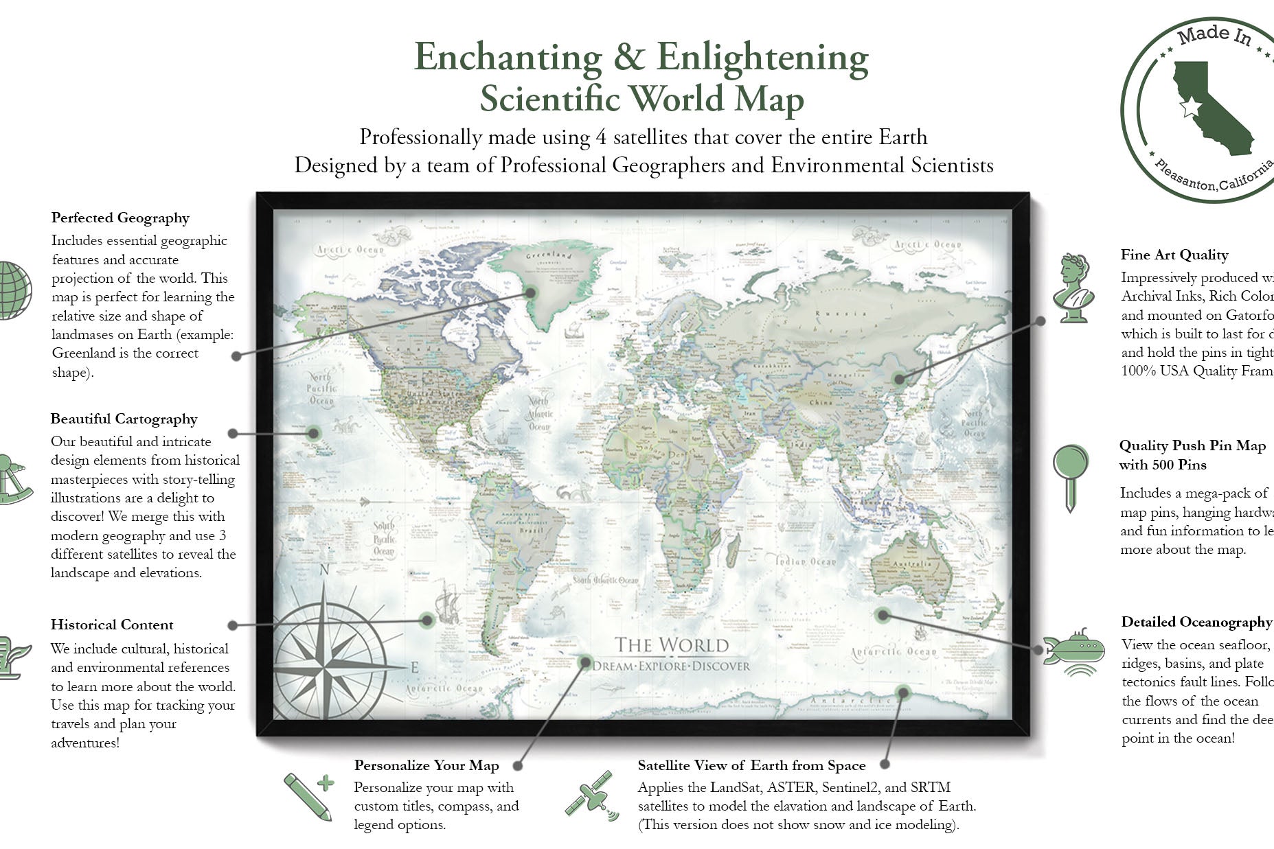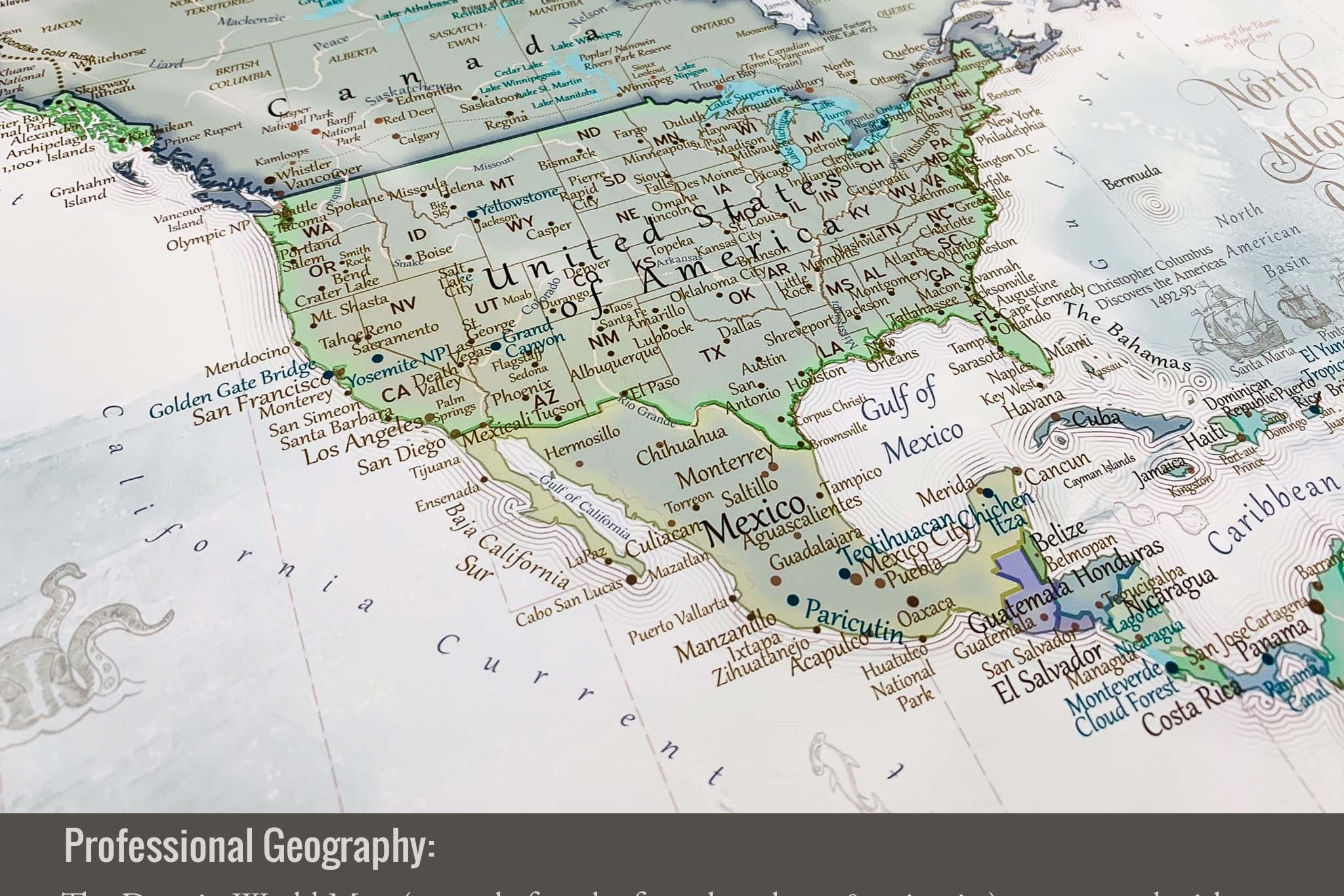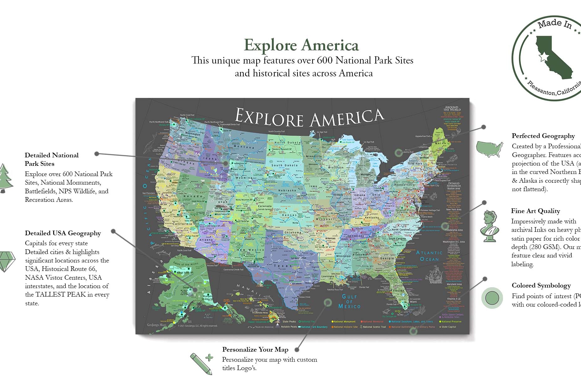 - Created by a professional geographer/cartographer, the research and design for this USA map took over a year.