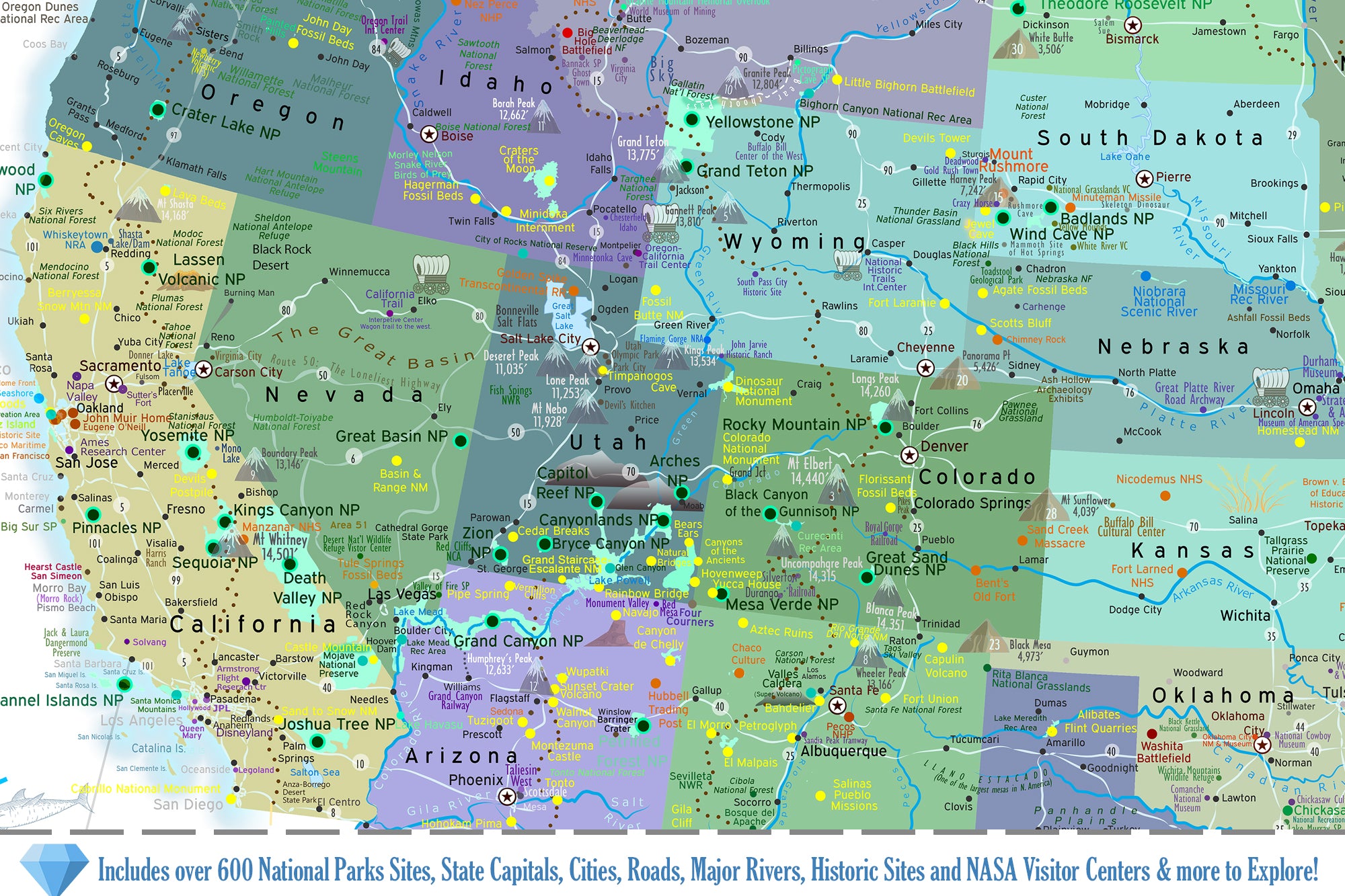 - Our detailed geography also includes state capitals, major cities, rivers, mountains, the U.S. interstate system, historical cities, NASA Space Centers, and much more. Explore fascinating travel destinations and find ideas for your next USA road trip!