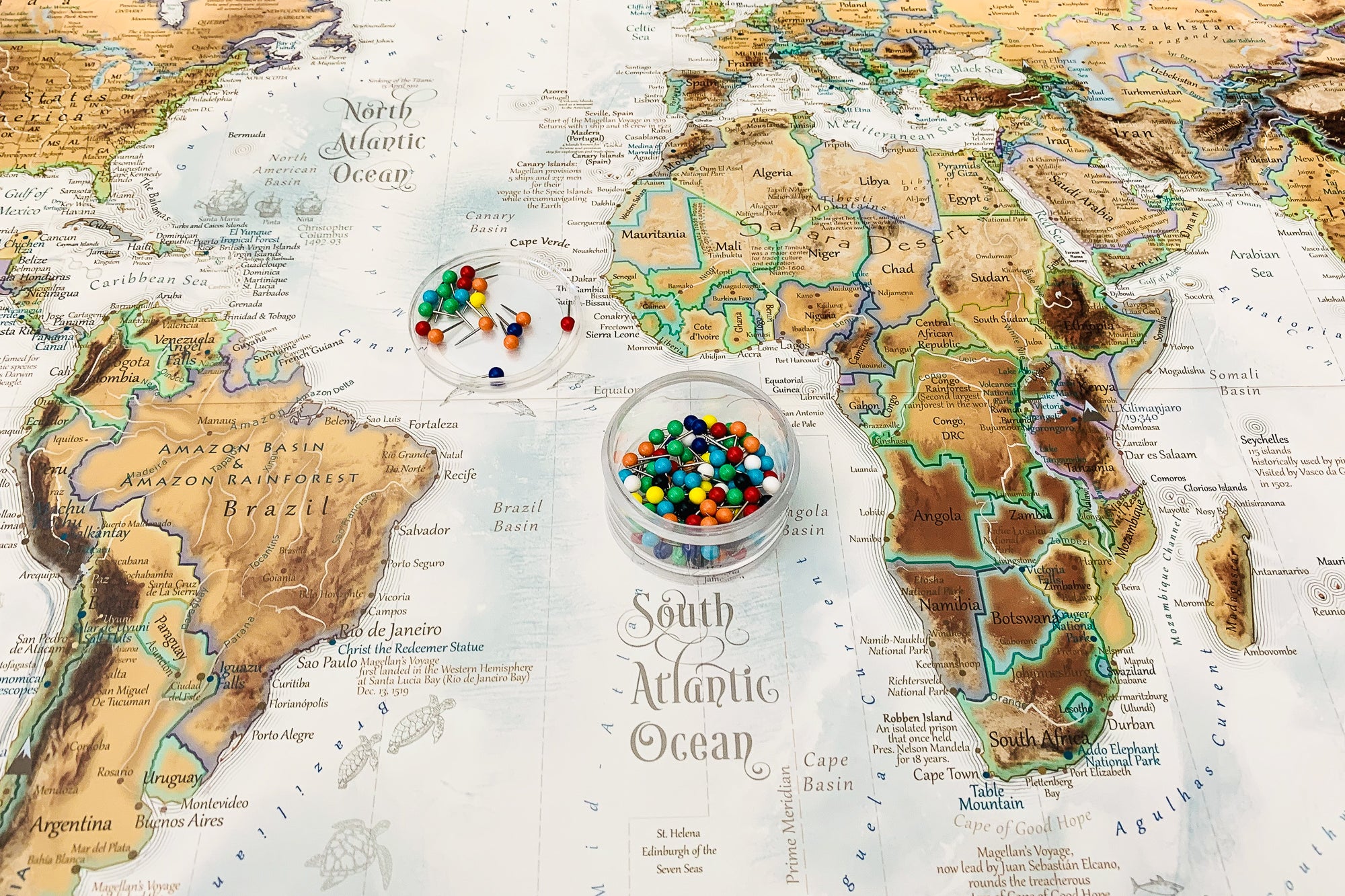 - Create an amazing interactive display, where visitors can pin where they came from and see where others have traveled from.