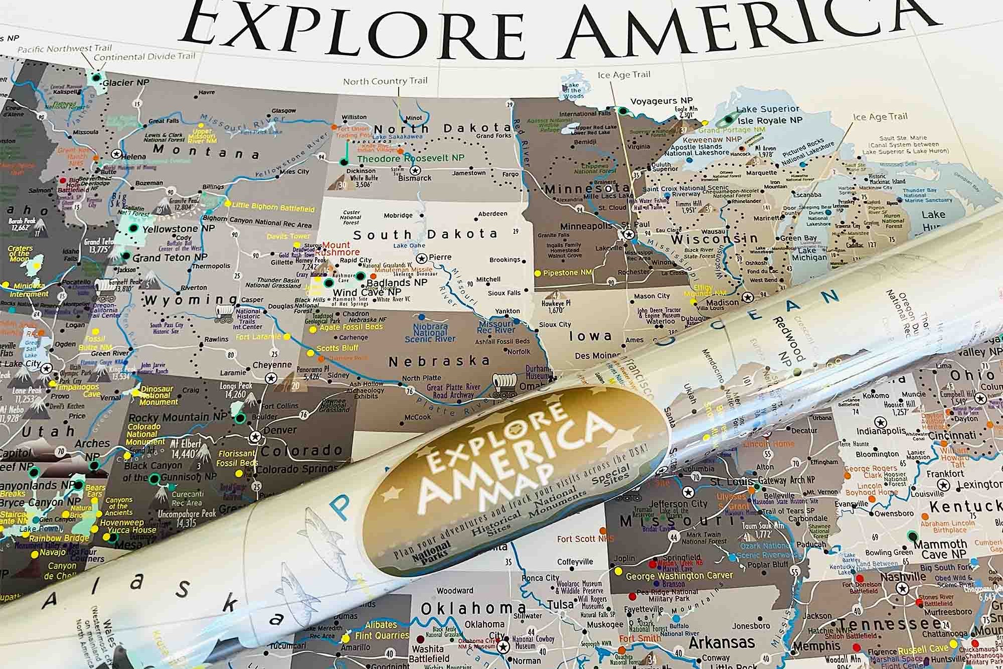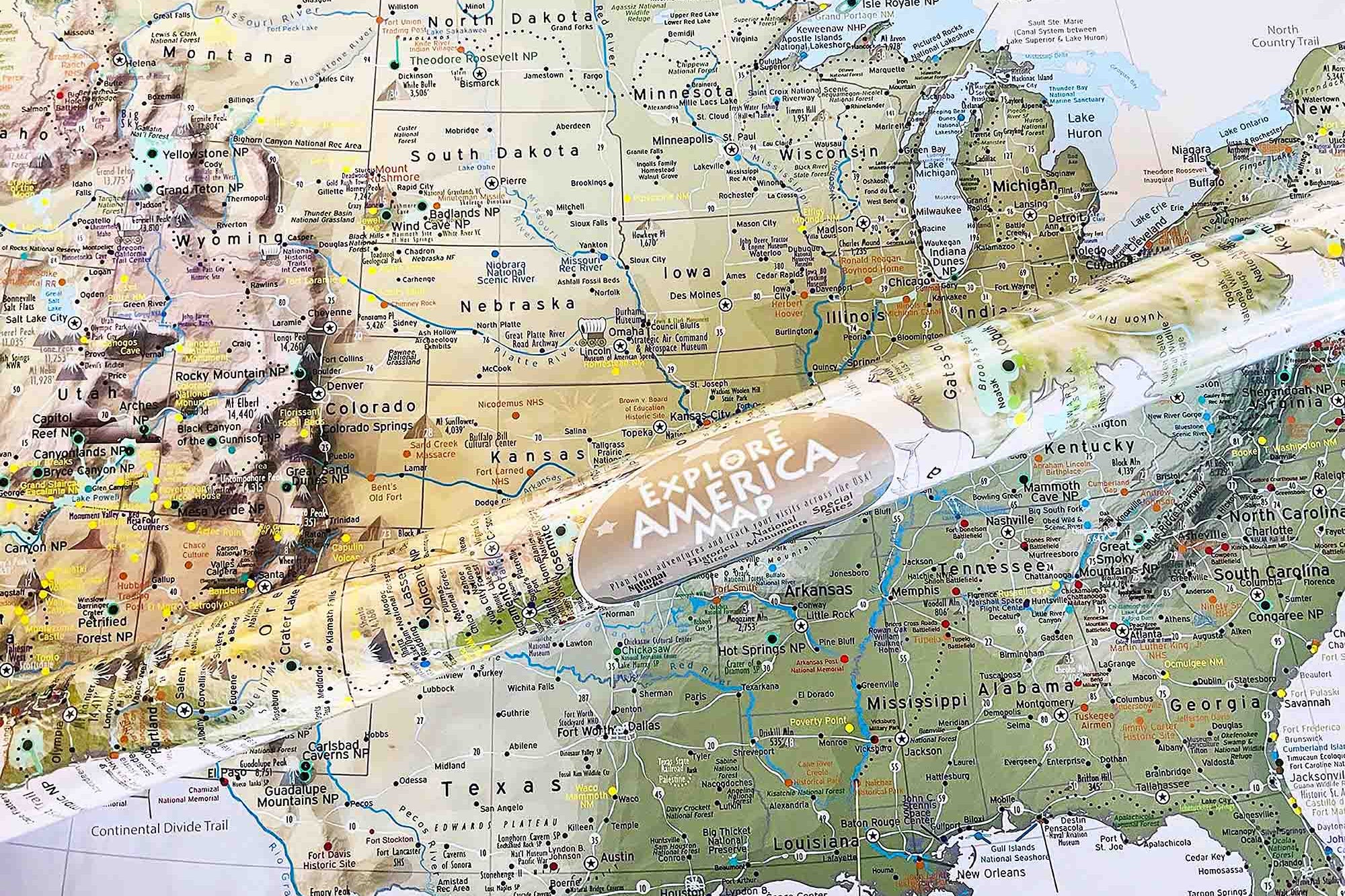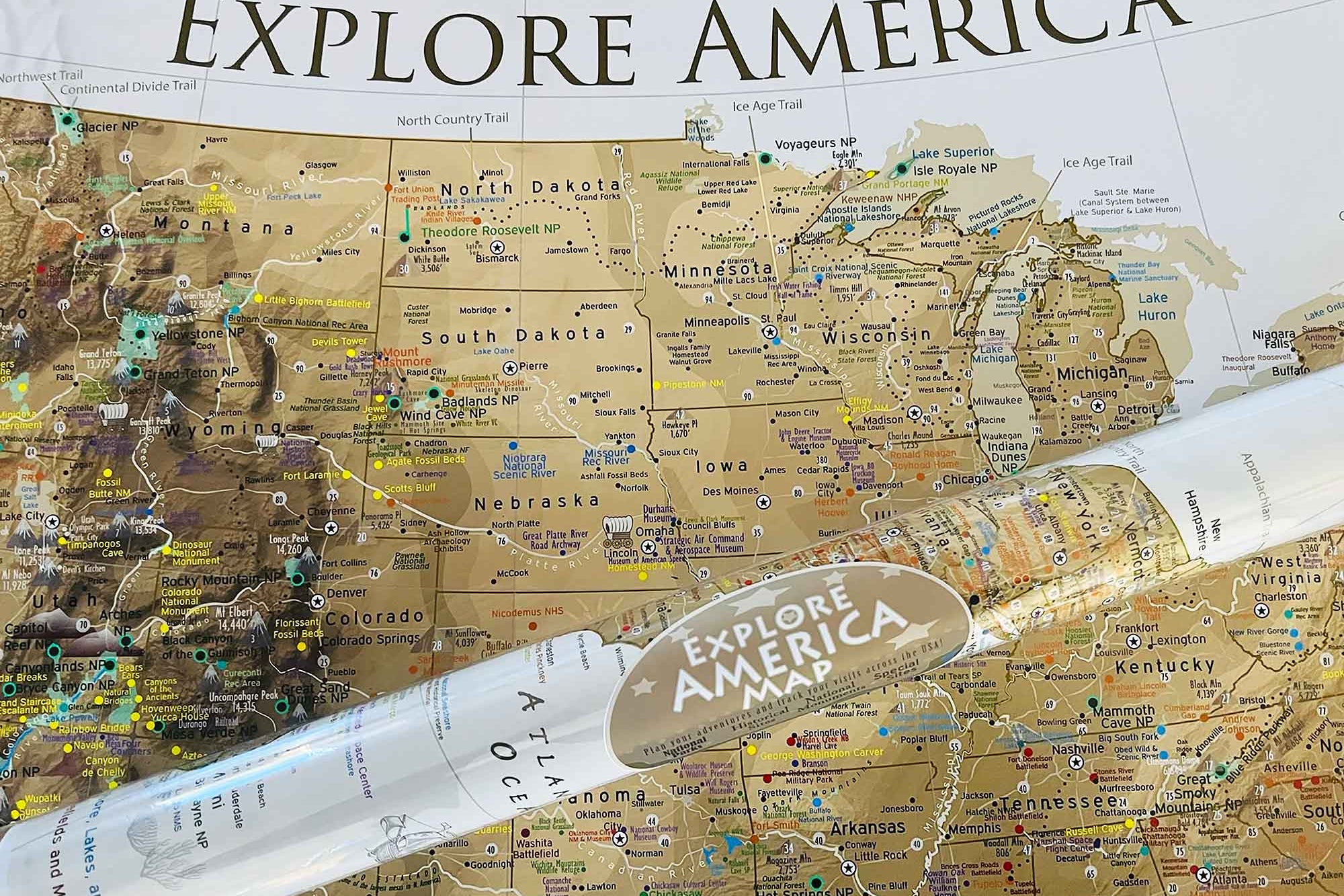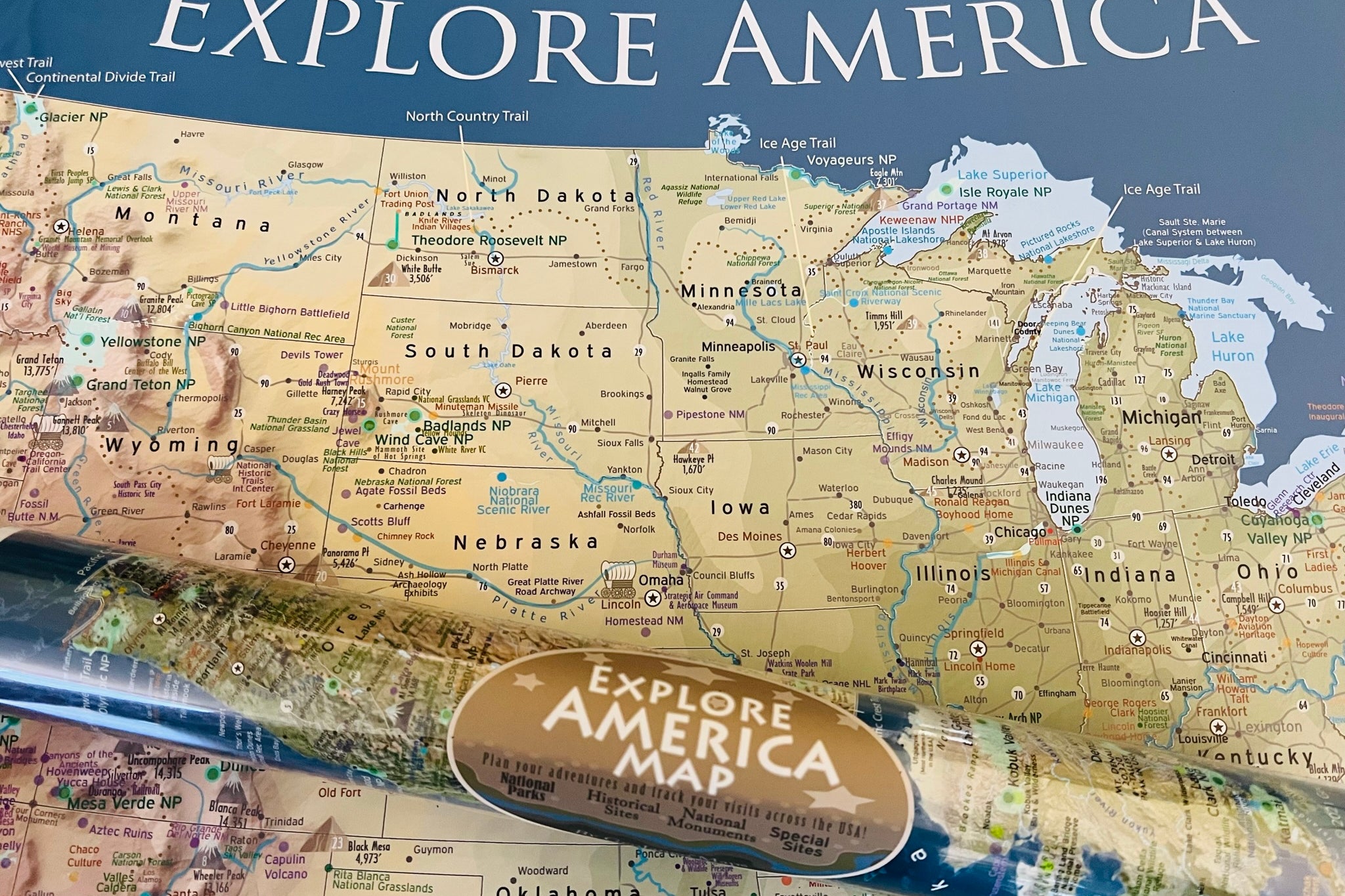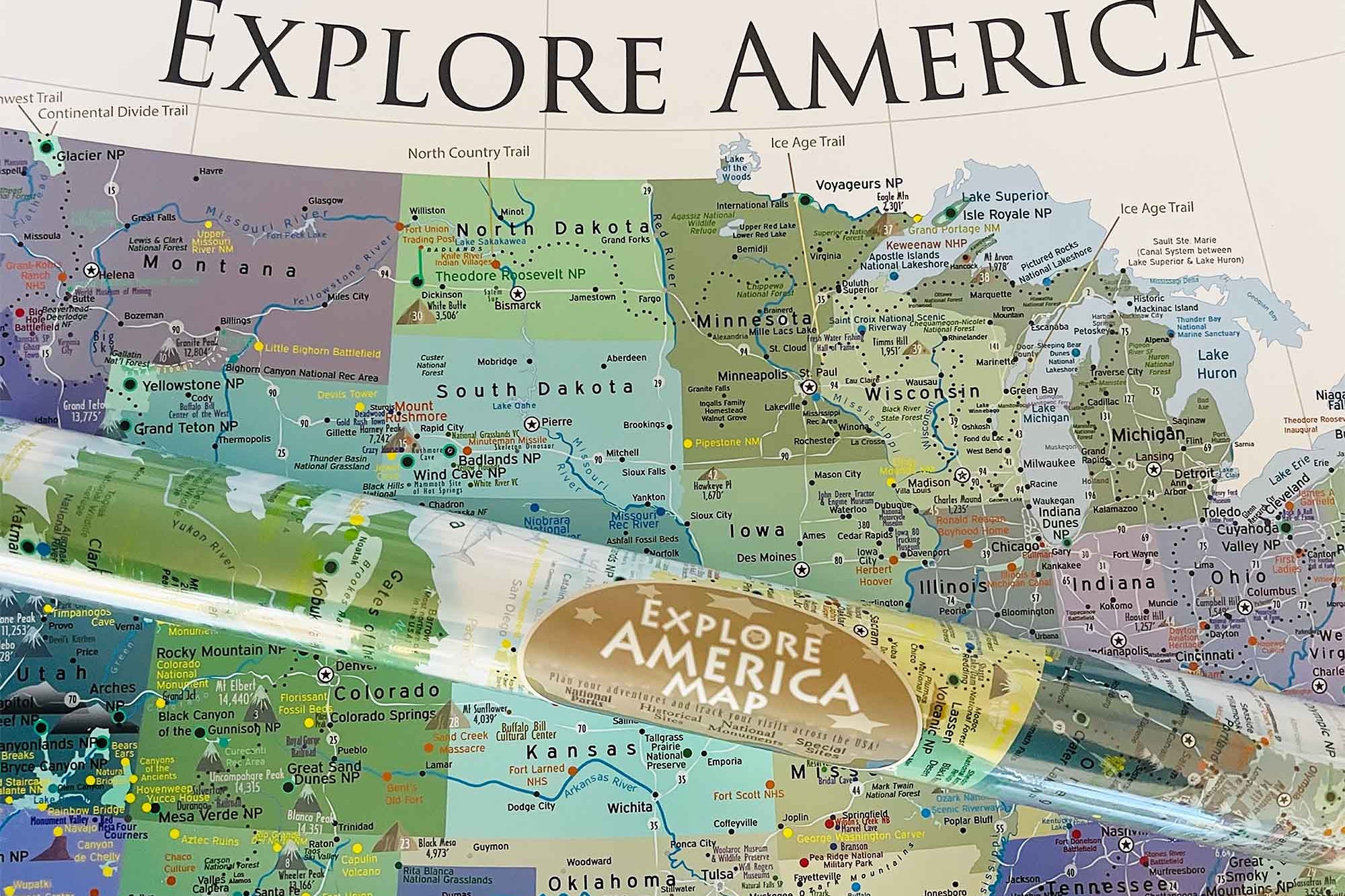 60x40 inch Explore America Map featured at Kunes RV of Elkhorn, Wisconsin
