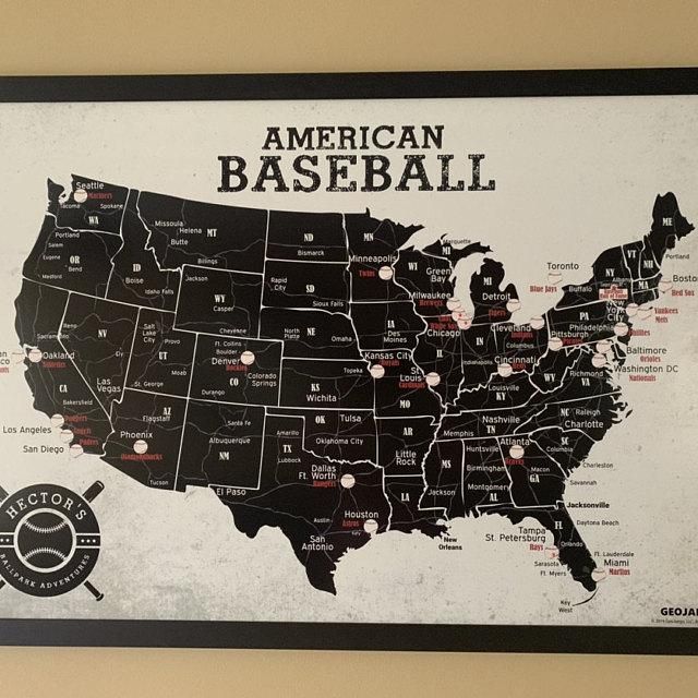 A beautiful, top-quality map is designed to last a lifetime. The Framed MLB Teams Map is the perfect gift for Baseball fans of all ages! This unique push pin map displays the locations of all MLB stadiums in the USA & Canada. Free shipping included.