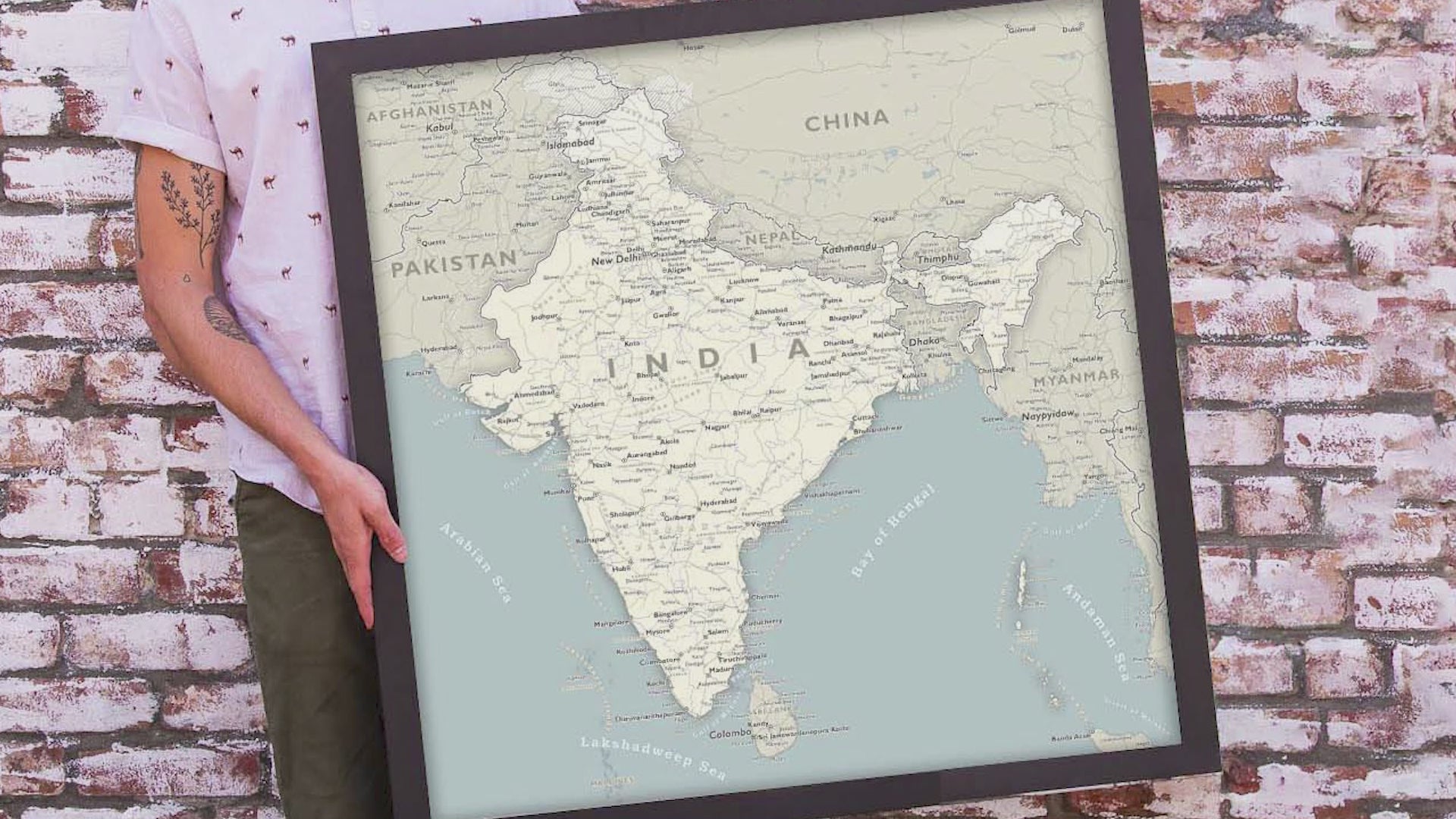 Applications: Use the map for businesses, personal travel, and education! Great homeschool geography wall map of India.