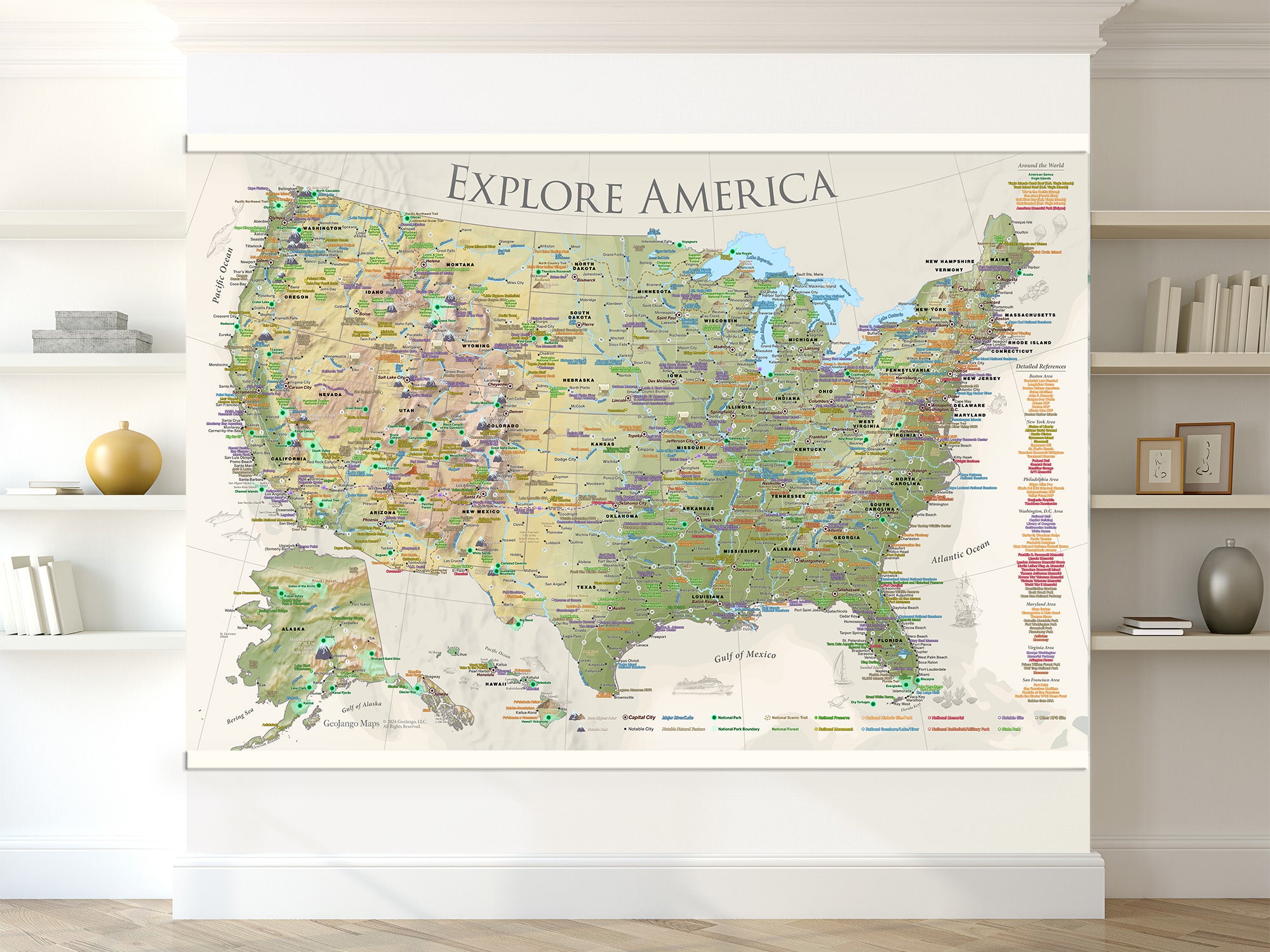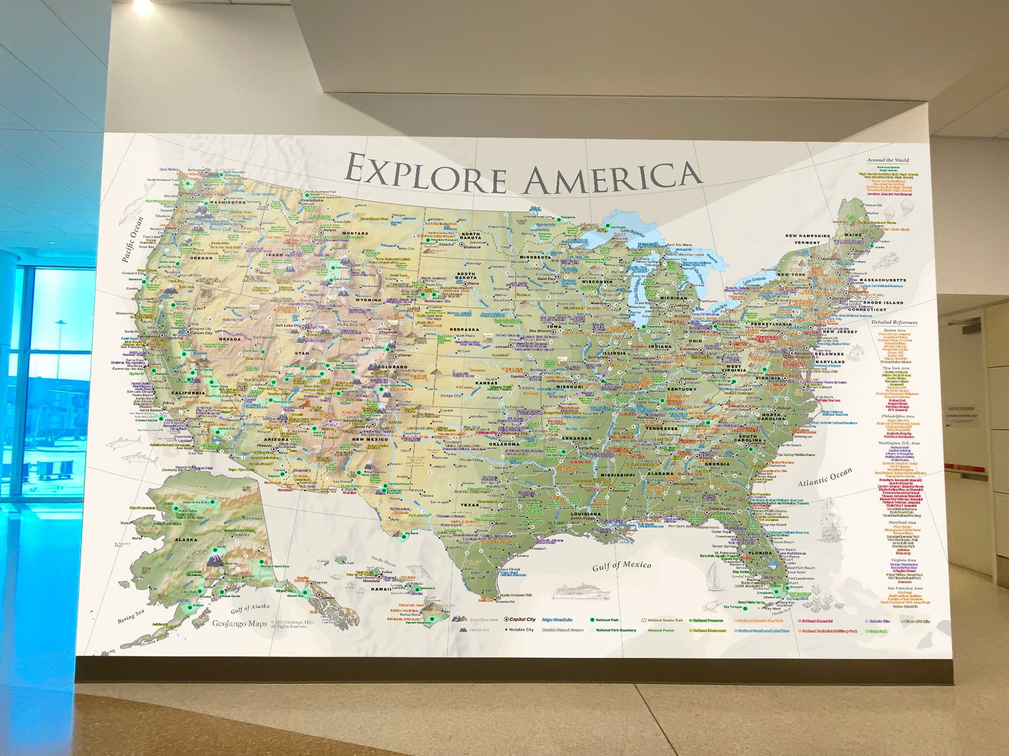Geographer's Note: This map is a work of art, passion, and dedication. We built it for you to learn more about the USA. We hope you will venture out and explore America!