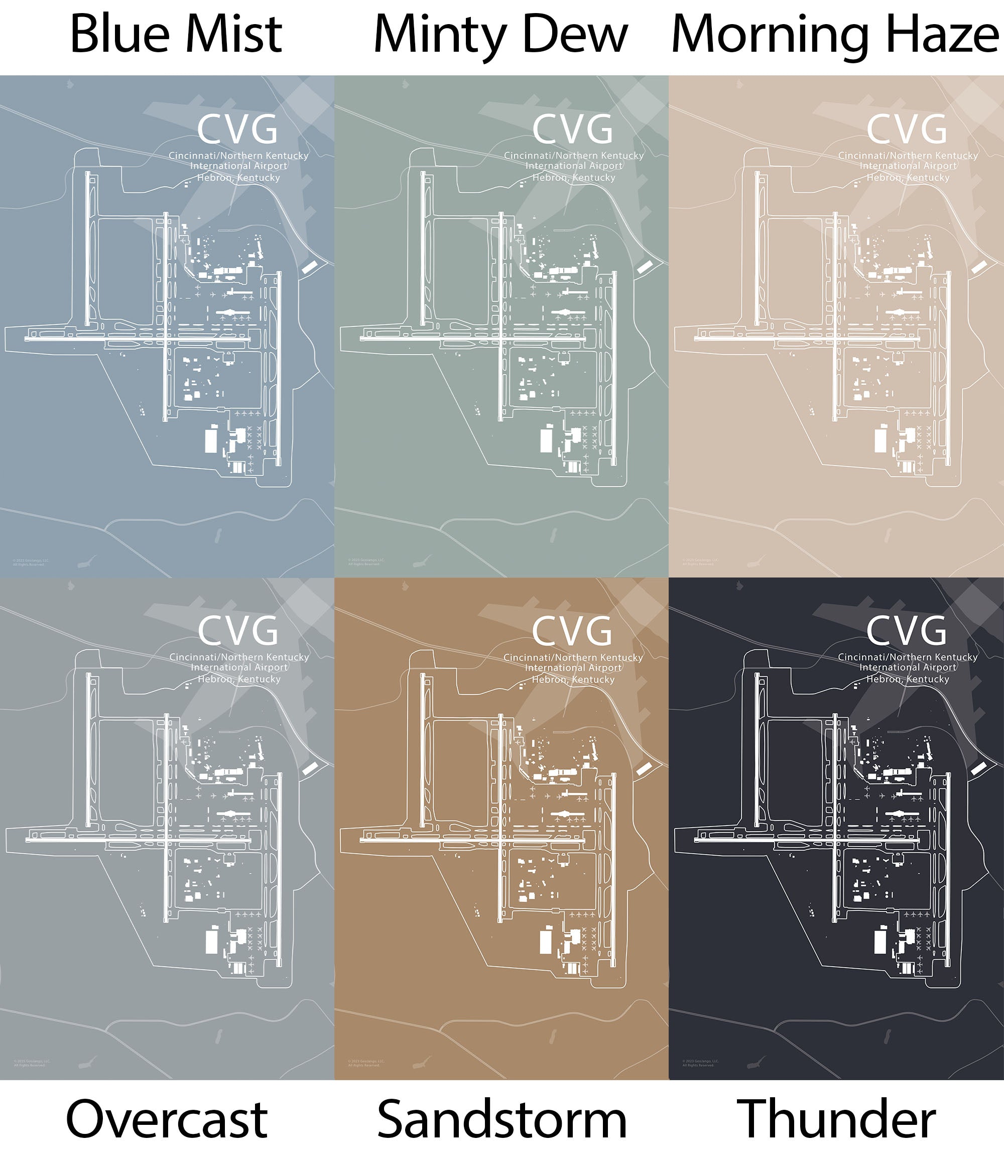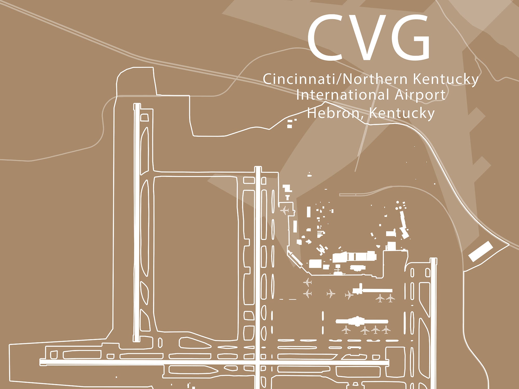 Introducing our exquisite Wall Art Airport Map of CVG – Cincinnati/Northern Kentucky, a sophisticated blend of artistic flair and geographic precision that pays homage to the dynamic energy of this bustling aviation hub.