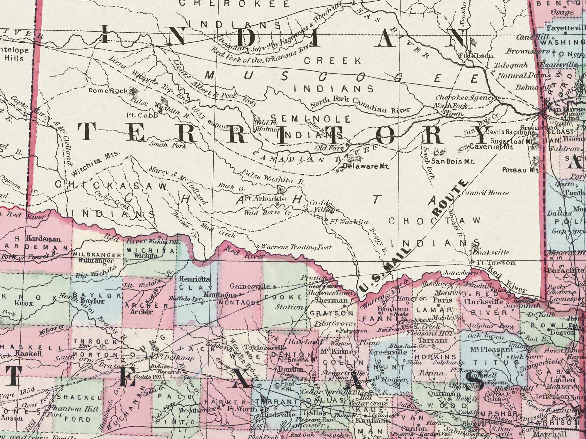 Geographic Details: This historic map shows many details of towns, roads, railroads, and waterways in the 19th century of the United States.