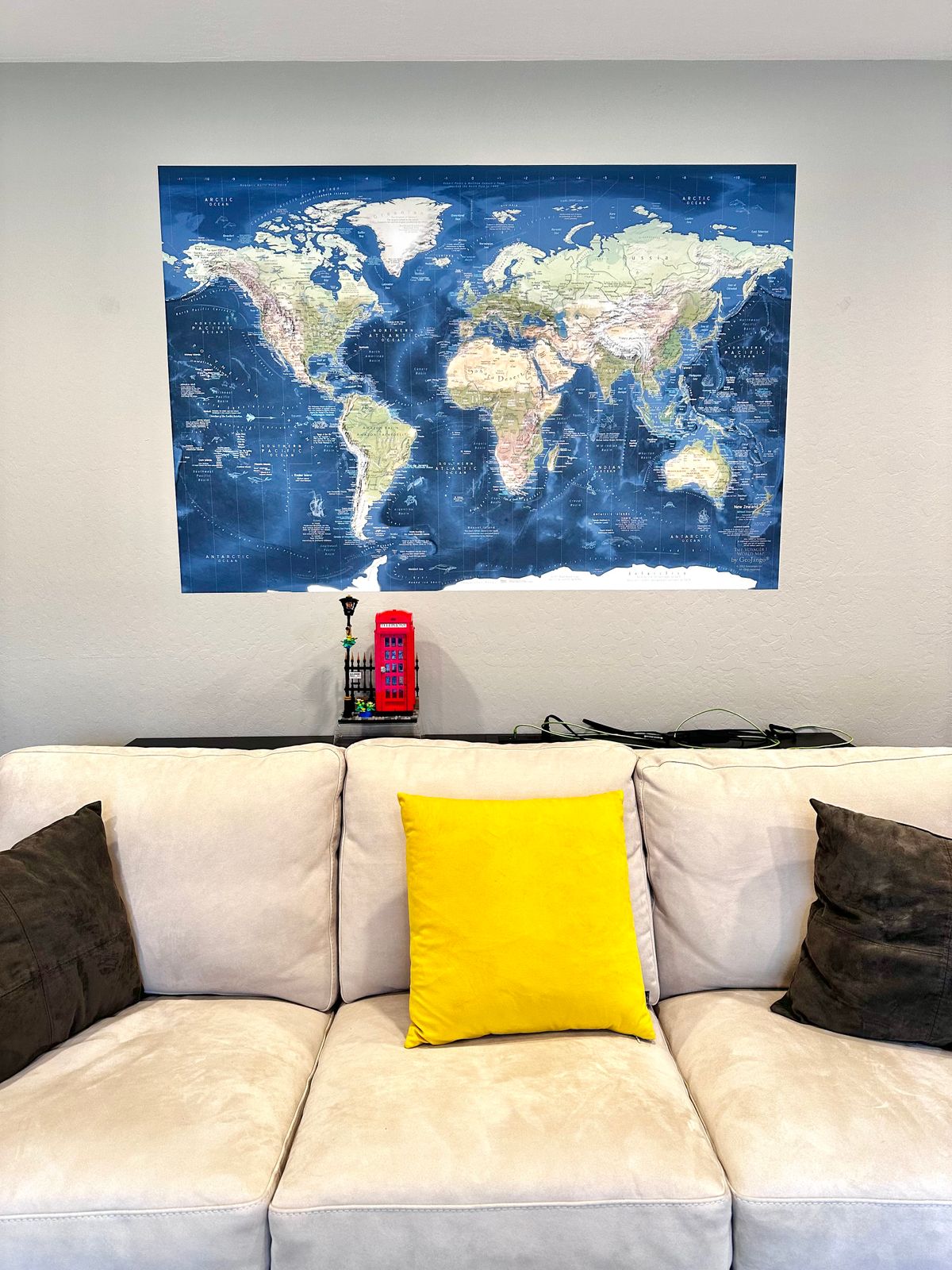 Ideal for educators, globe-trotters, and those passionate about decor, our world map is meticulously detailed, serving as both an invaluable educational resource and an elegant decorative element. This map ignites discussions and curiosity about the world's varied cultures and geographical landscapes.