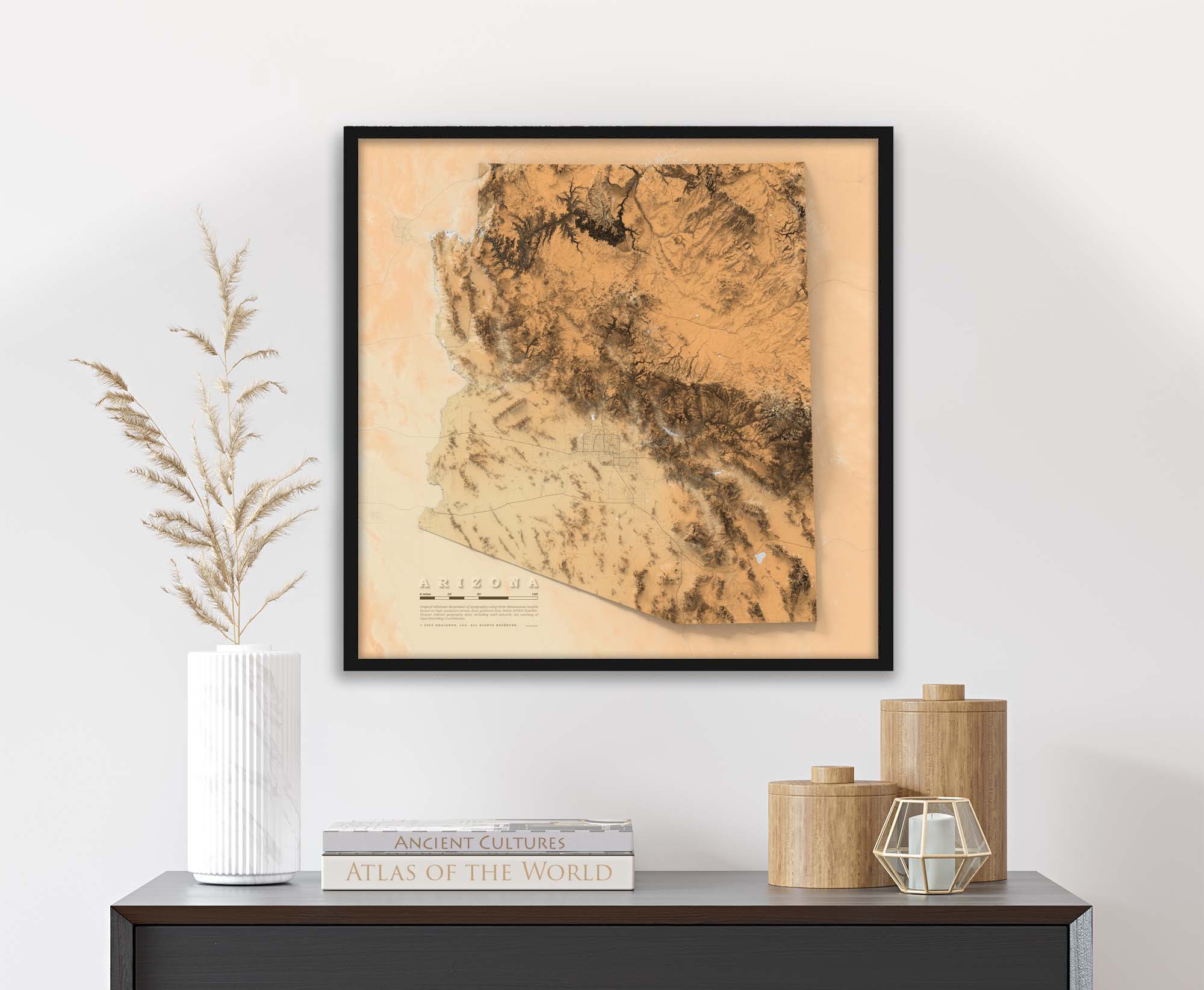 The map's sleek design and intricate detail make it an amazing addition to any modern home, office, or classroom, and its educational value makes it an ideal gift for anyone interested in the geography and natural beauty of Arizona.