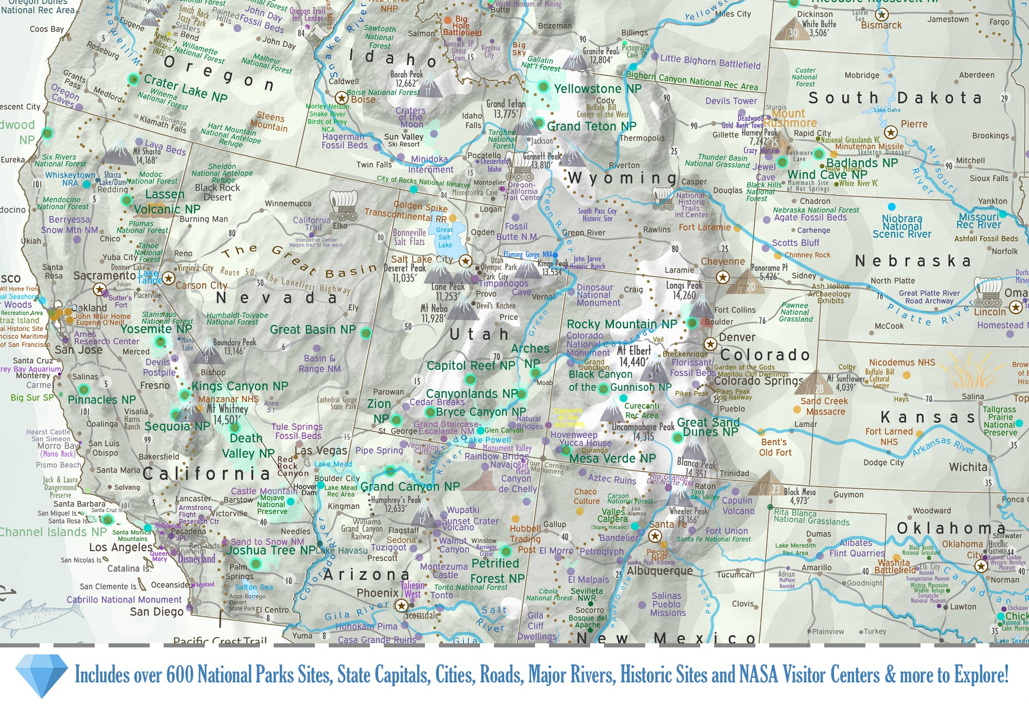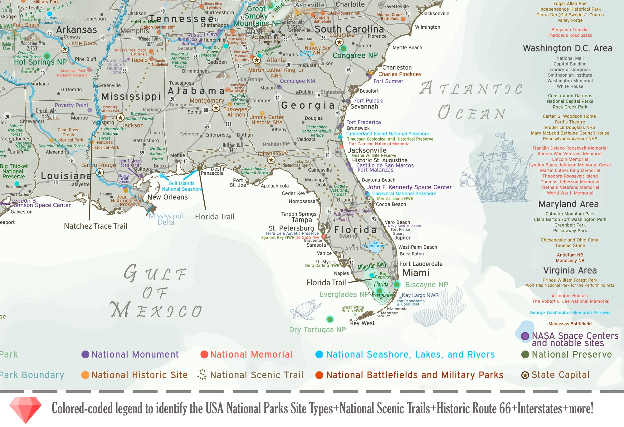 For exclusive wholesale buyers: USA National Park Map: A highly-detailed National Park with NPS National Monuments and Historical Sites map of the United States. Ideal for Museum and Educational Shops. A stunning map that was created by a professional Geographer showing the amazing sights across the USA.