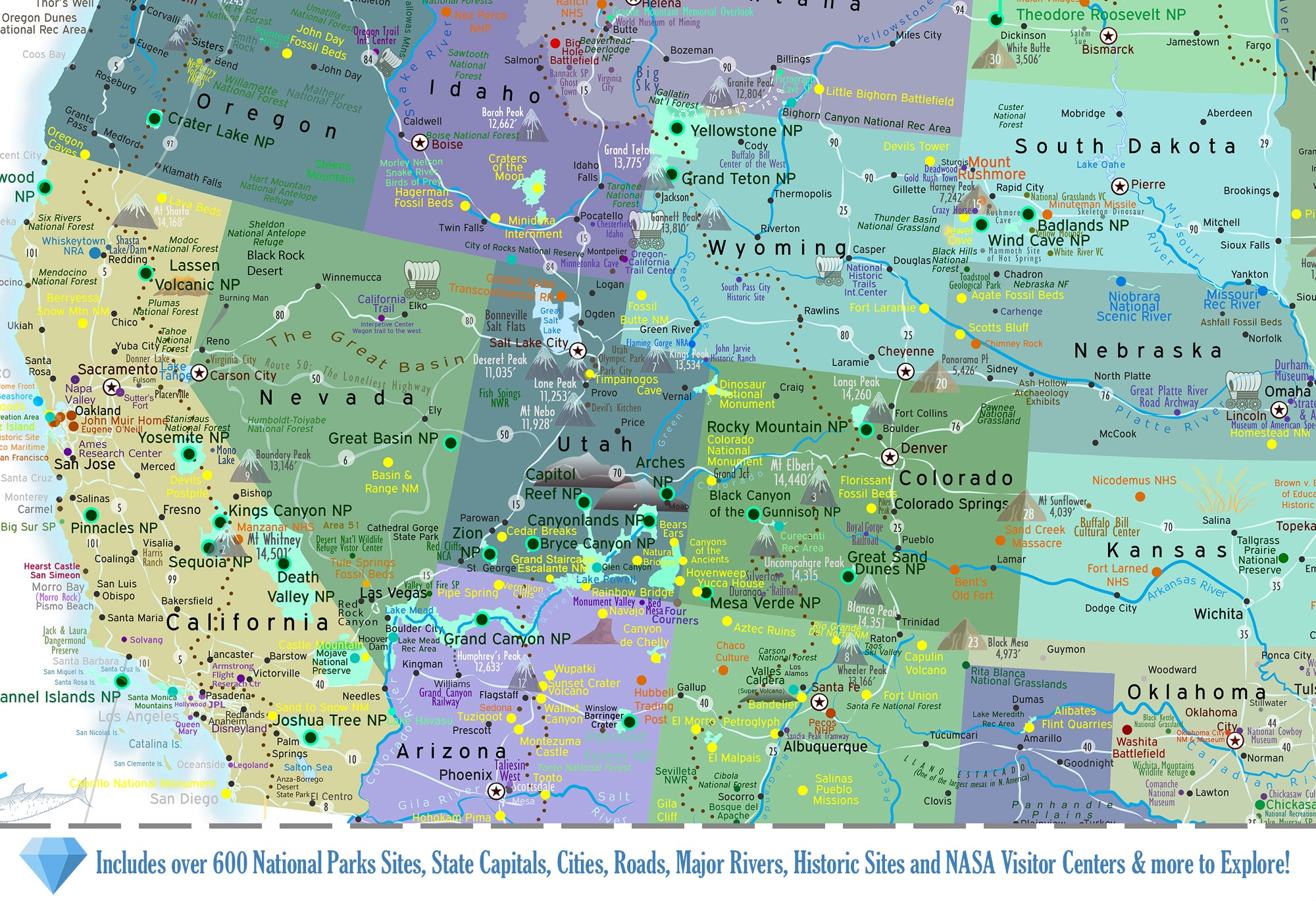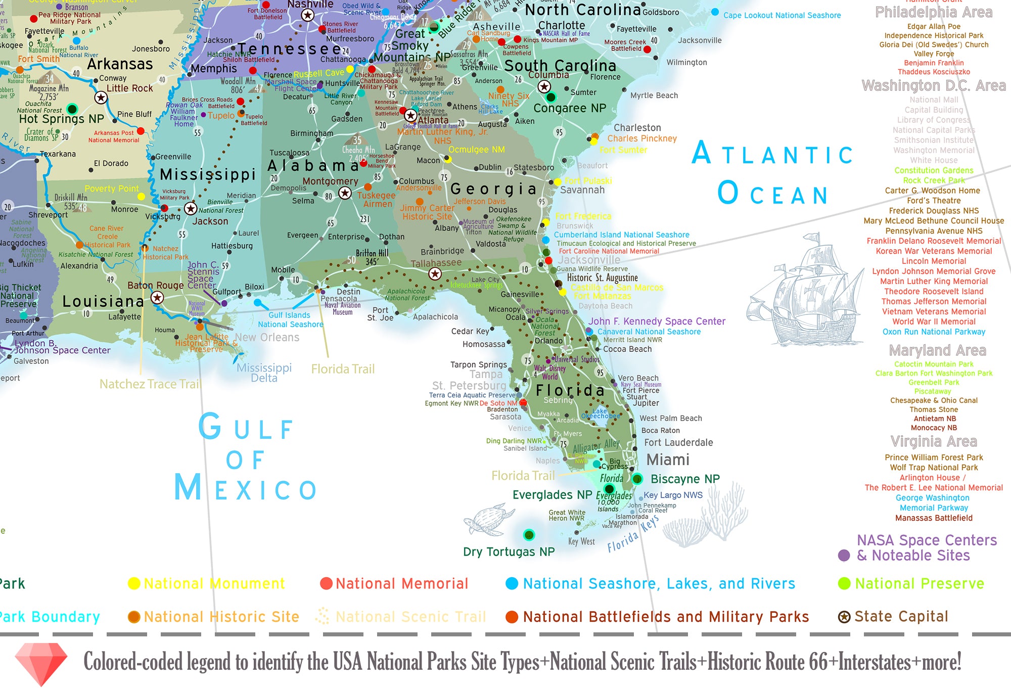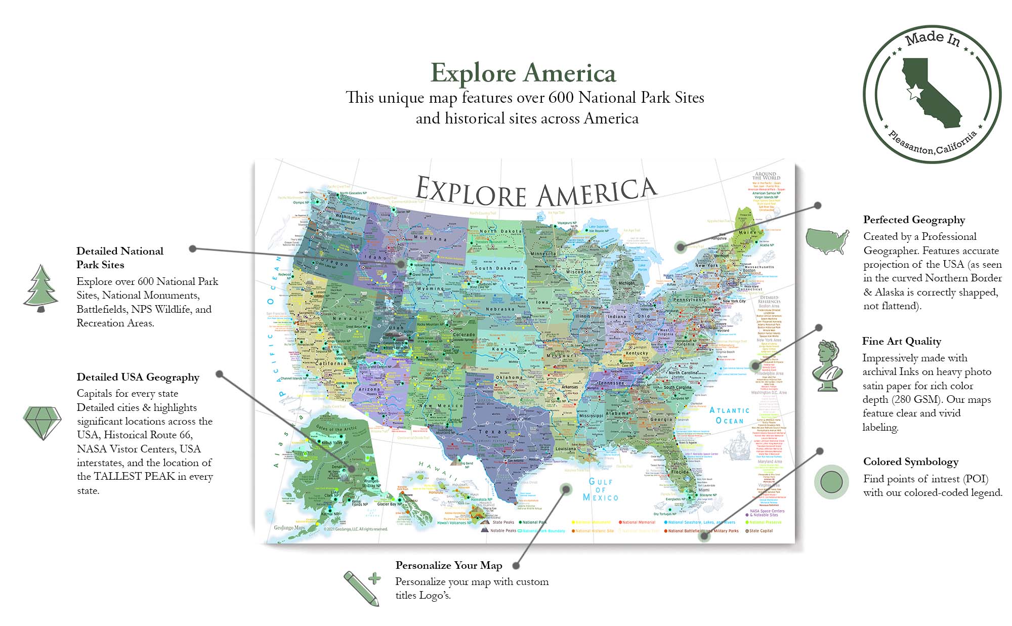 For exclusive wholesale buyers: USA National Park Map: A highly-detailed National Park with NPS National Monuments and Historical Sites map of the United States. Ideal for Museum and Educational Shops. A stunning map that was created by a professional Geographer showing the amazing sights across the USA.