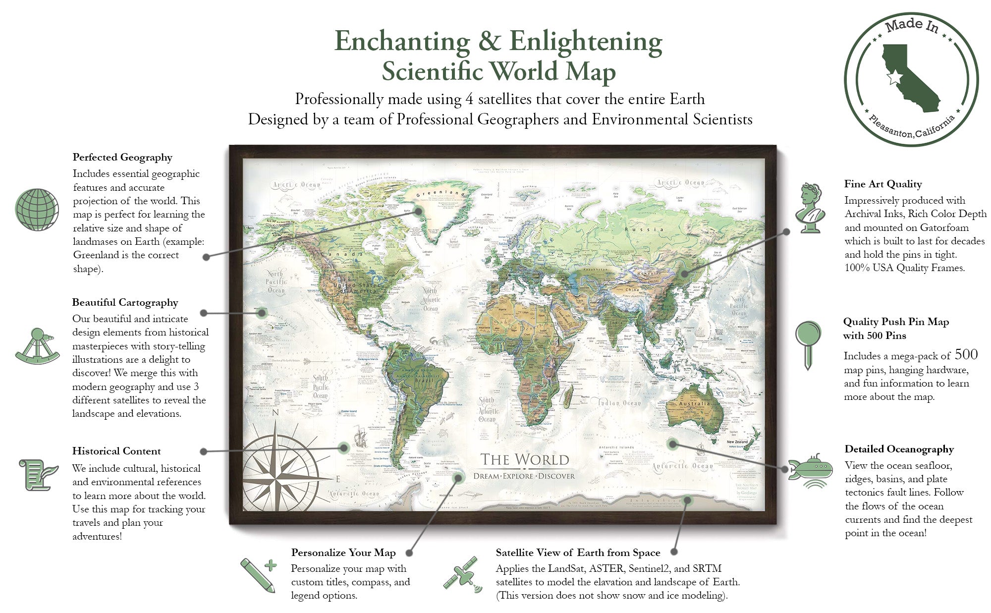 - We’ve built the leading map production studio in the USA and use exclusively USA-made materials. Each pin map is proudly crafted by hand, printed by us on the finest materials, mounted on museum-quality Gatorfoam, and carefully framed just for you.